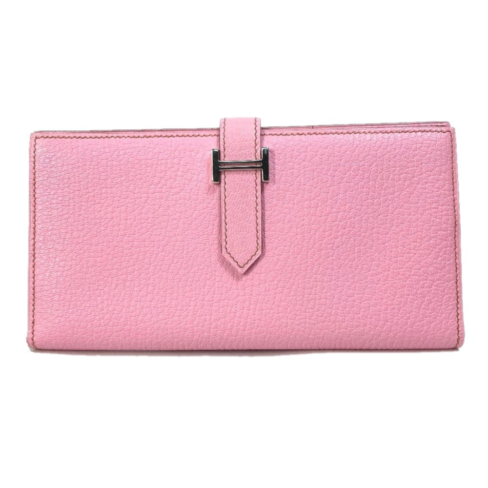 HERMES Long Wallet Purse Shave pink Long Wallet HMetal Bane Souffle