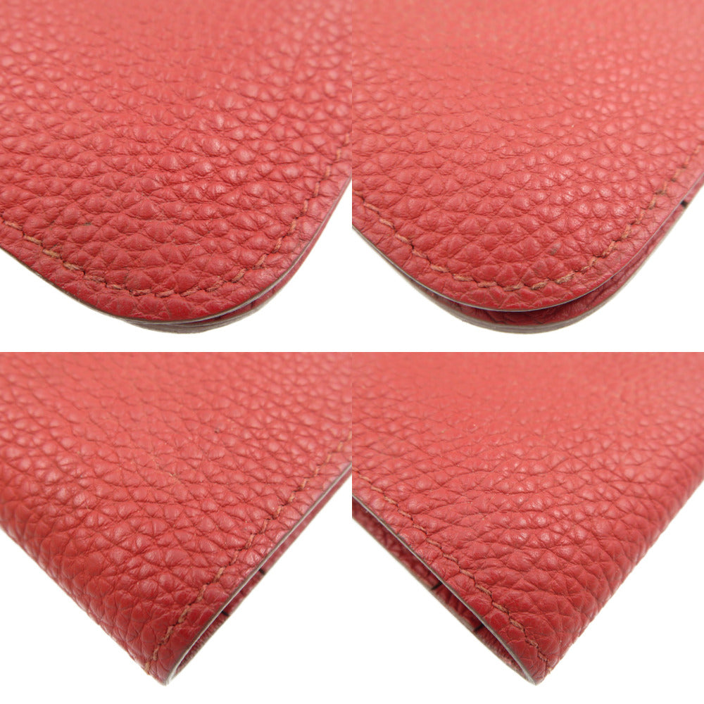 HERMES Long Wallet Purse Togo Red Dogon Duo GM Women Used Authentic