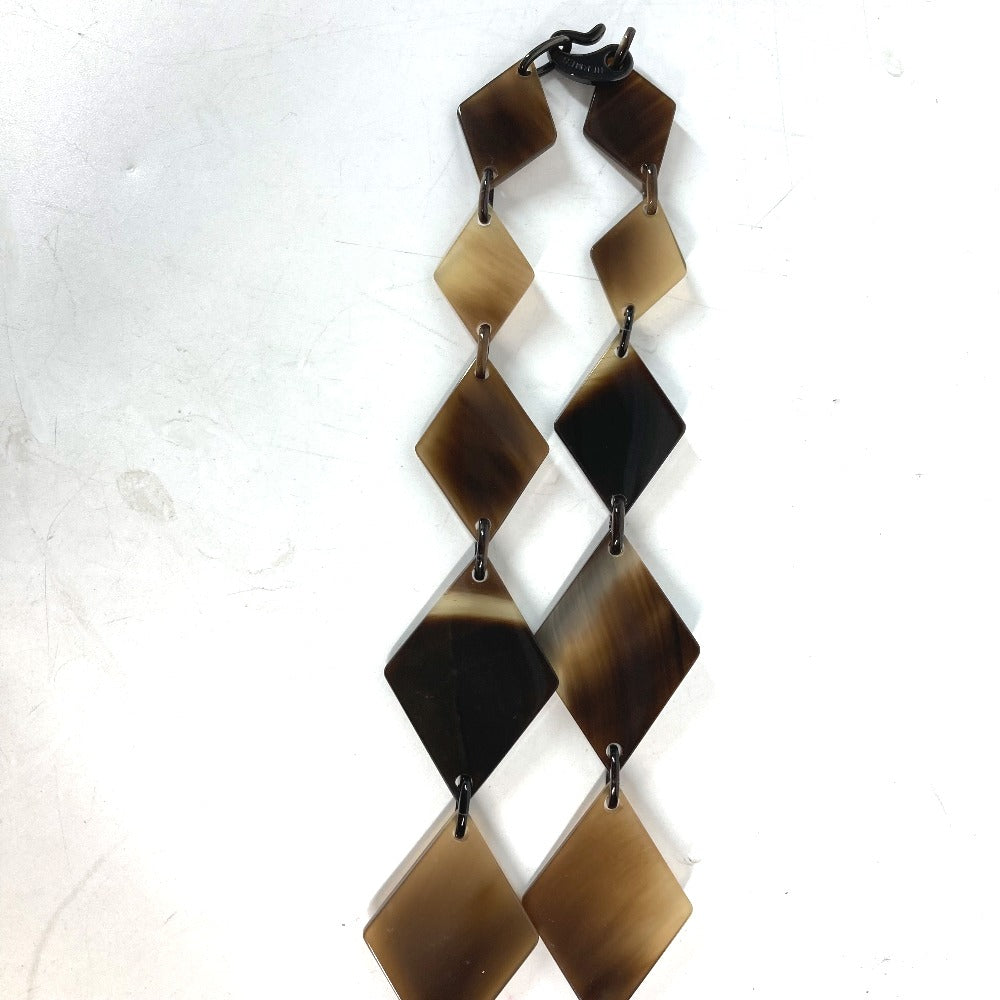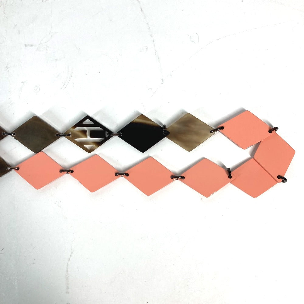 HERMES Necklace Lacquer, Buffalo Horn Brown x pink Long necklace Women Used Authentic