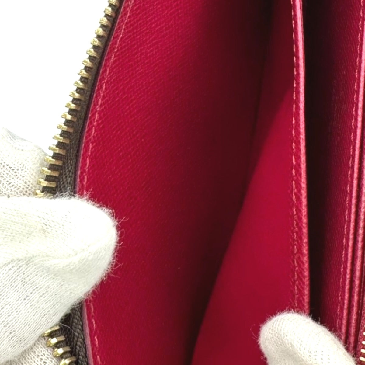 LOUIS VUITTON Long Wallet Purse M41895 Monogram canvas Brown Zip Around Monogram Fuchsia Women Used Authentic