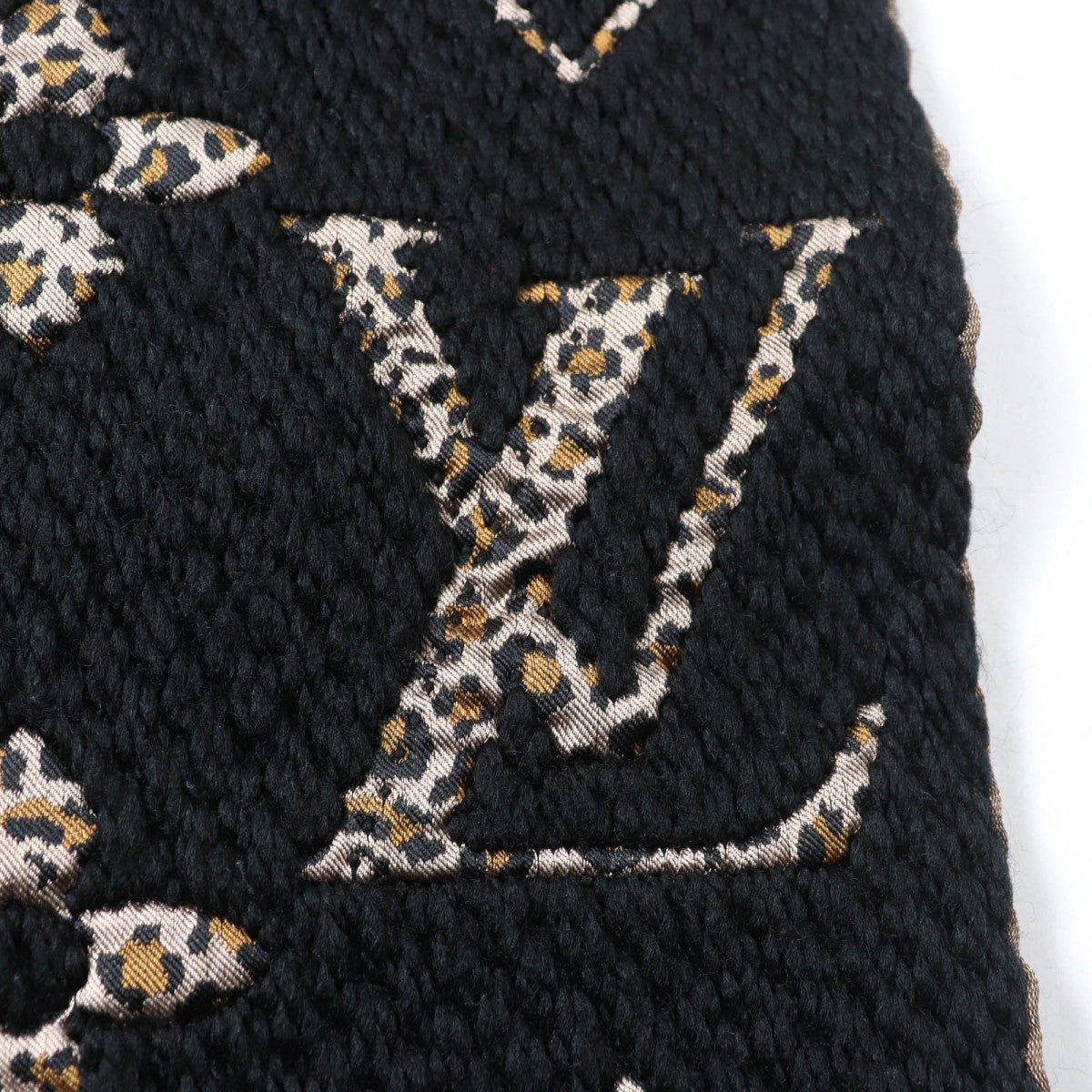 LOUIS VUITTON Scarf M75885 Main: 74% wool, Main: 26% silk Black beige Escharpe Giant Monogram Jungle Women Used Authentic