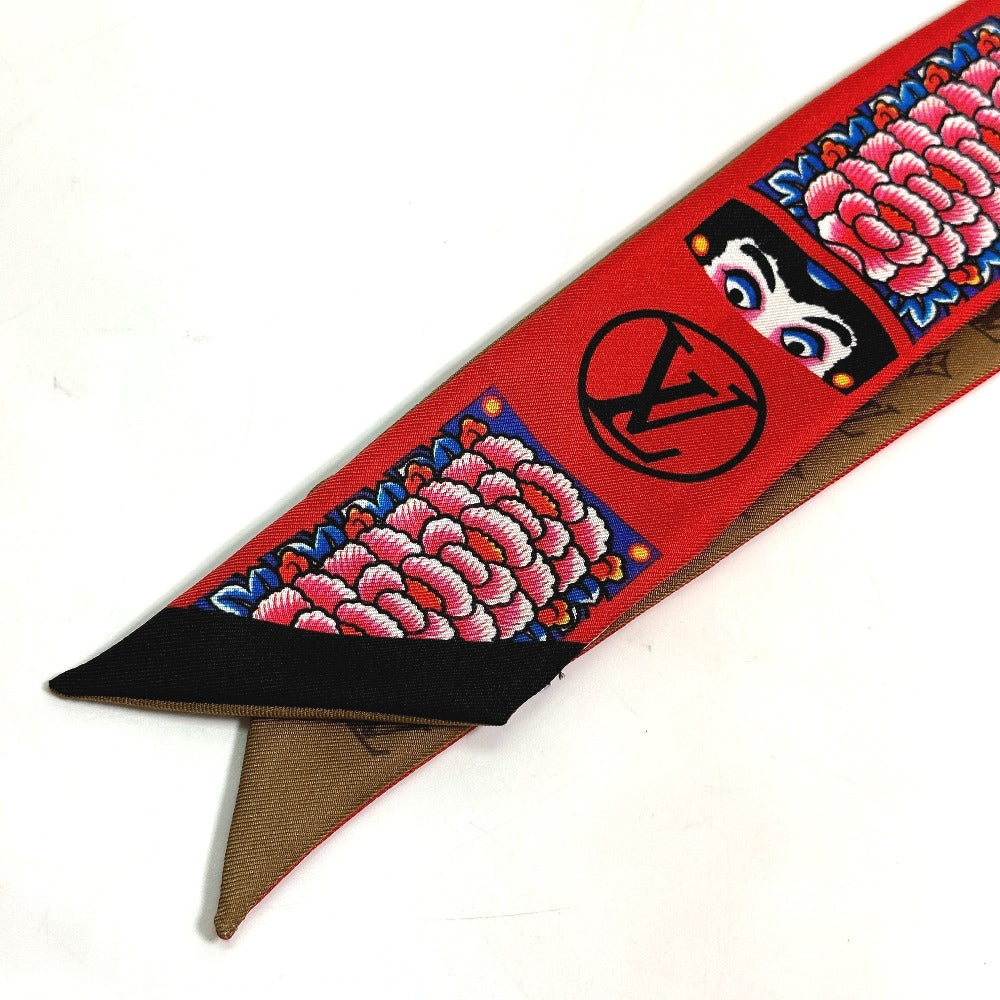 LOUIS VUITTON scarf MP1943 silk Brown Monogram Bando BB Kabuki Sticker Women Secondhand Authentic