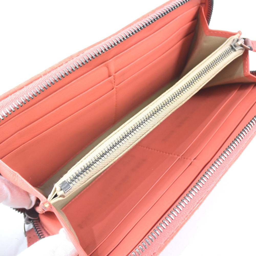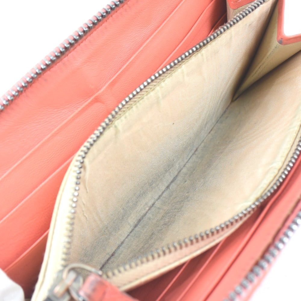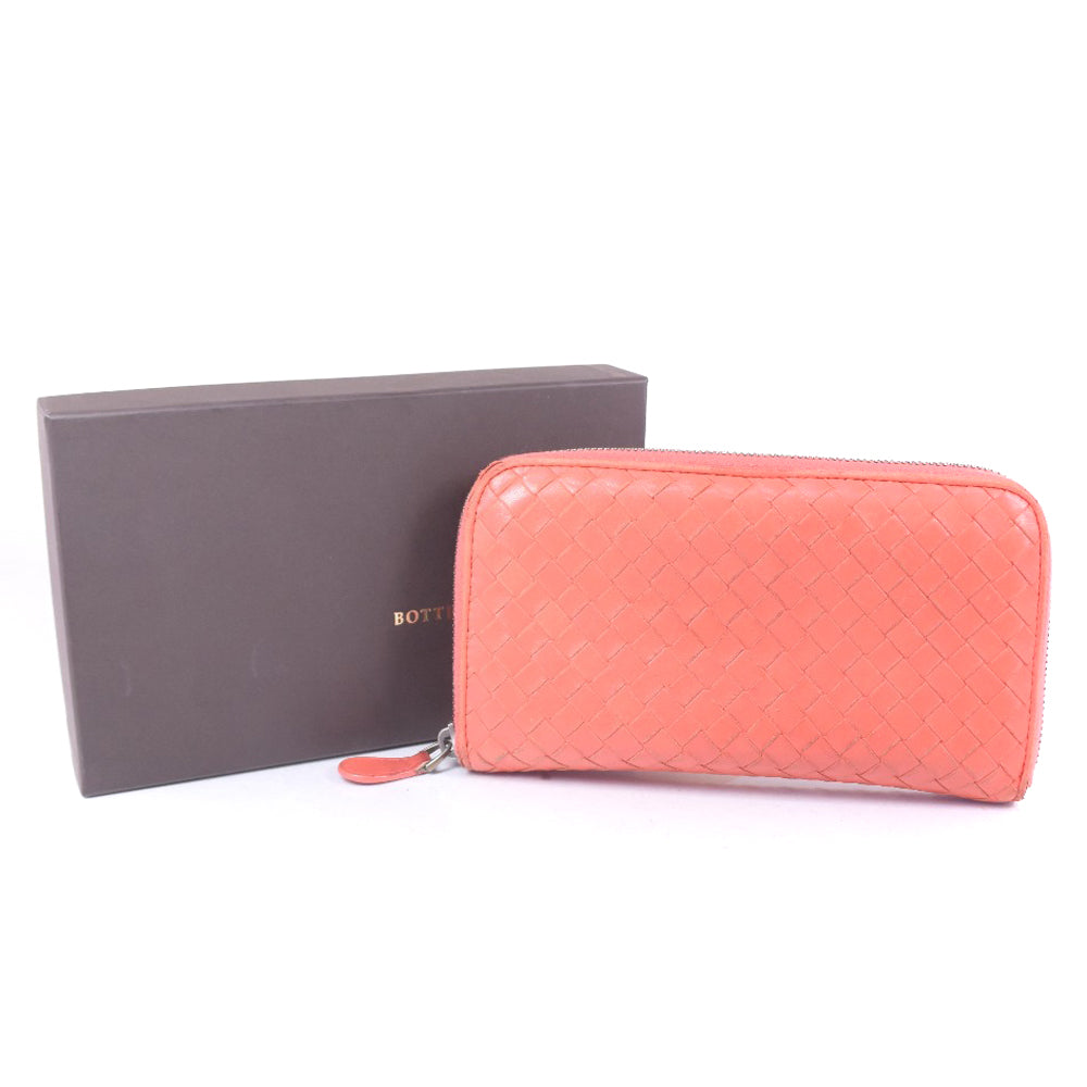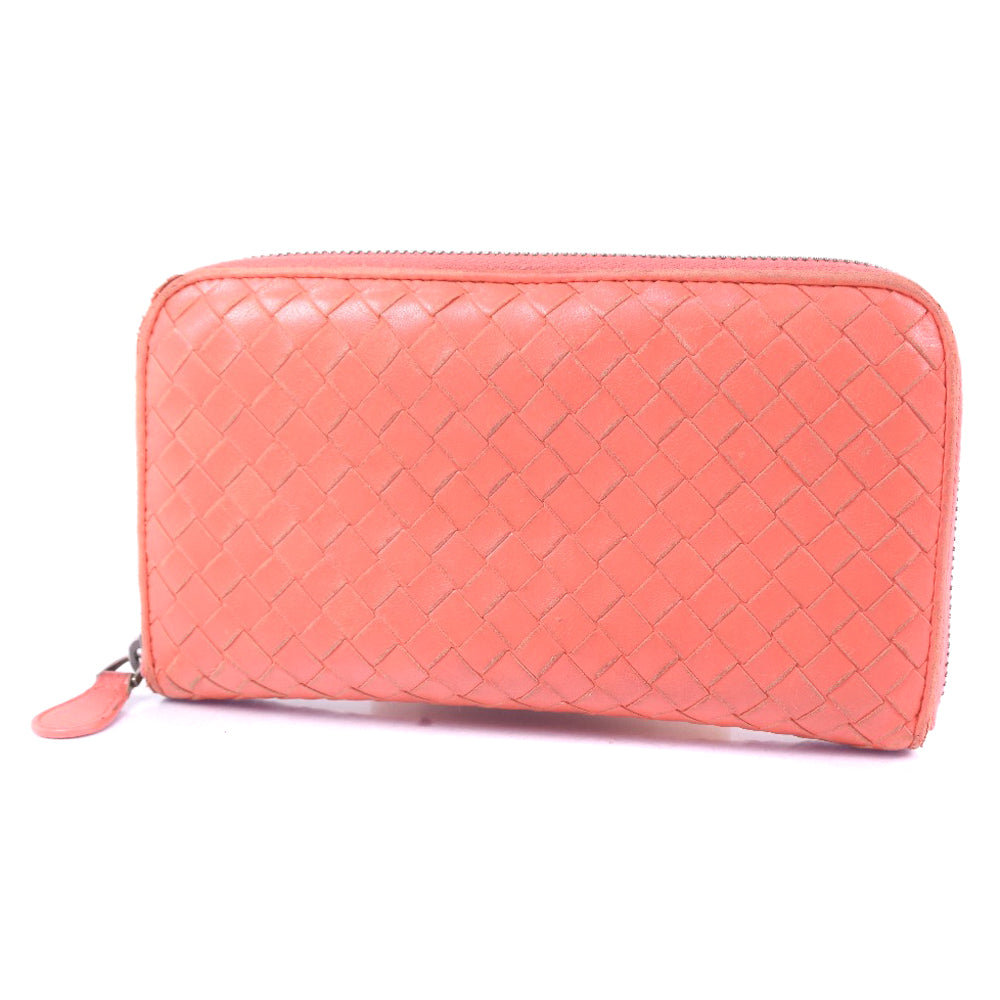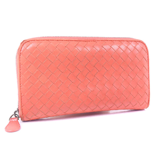 BOTTEGAVENETA Long Wallet Purse lambskin Red/pink INTRECCIATO Zip Around Women Used Authentic
