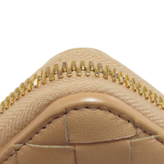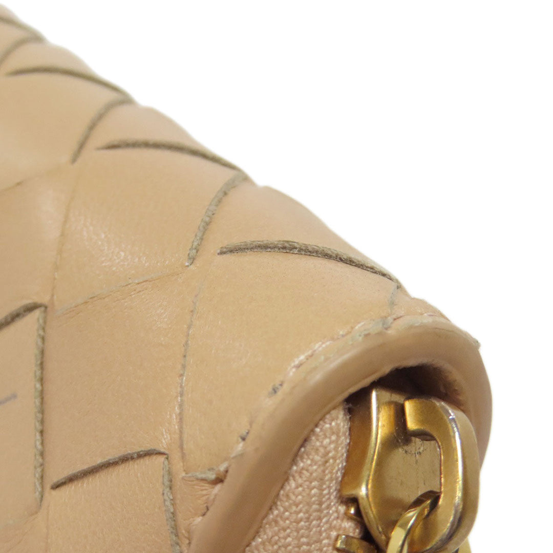 BOTTEGAVENETA Long Wallet Purse leather beige INTRECCIATO Women Used Authentic