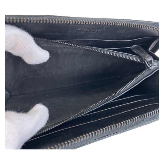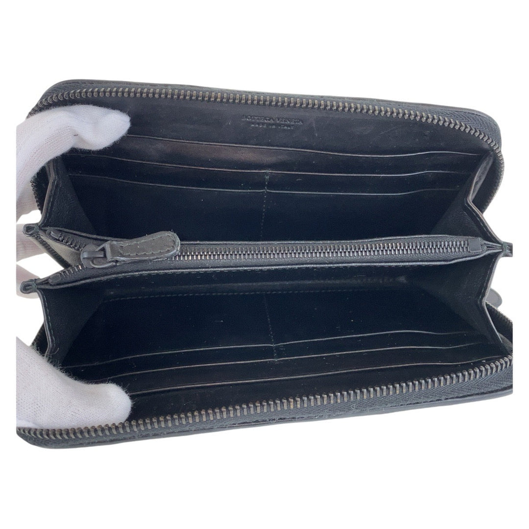 BOTTEGAVENETA Long Wallet Purse leather black Long Wallet Purse INTRECCIATO mens Used Authentic