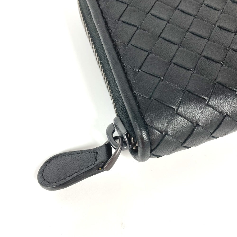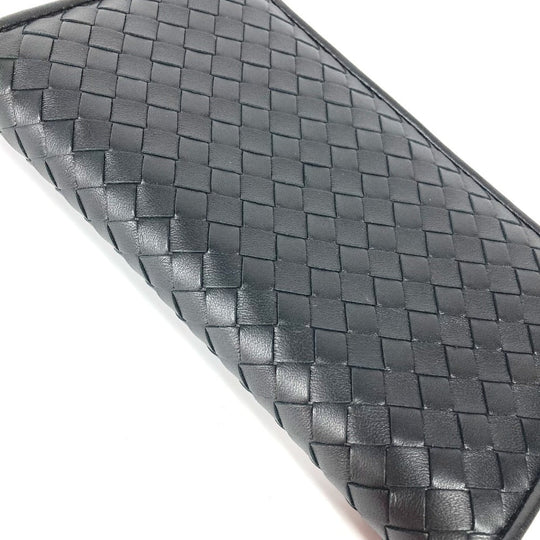 BOTTEGAVENETA Long Wallet Purse leather black Long wallet INTRECCIATO Women Used Authentic