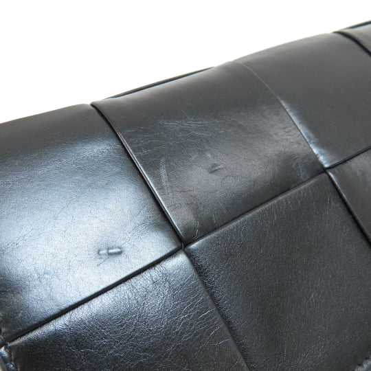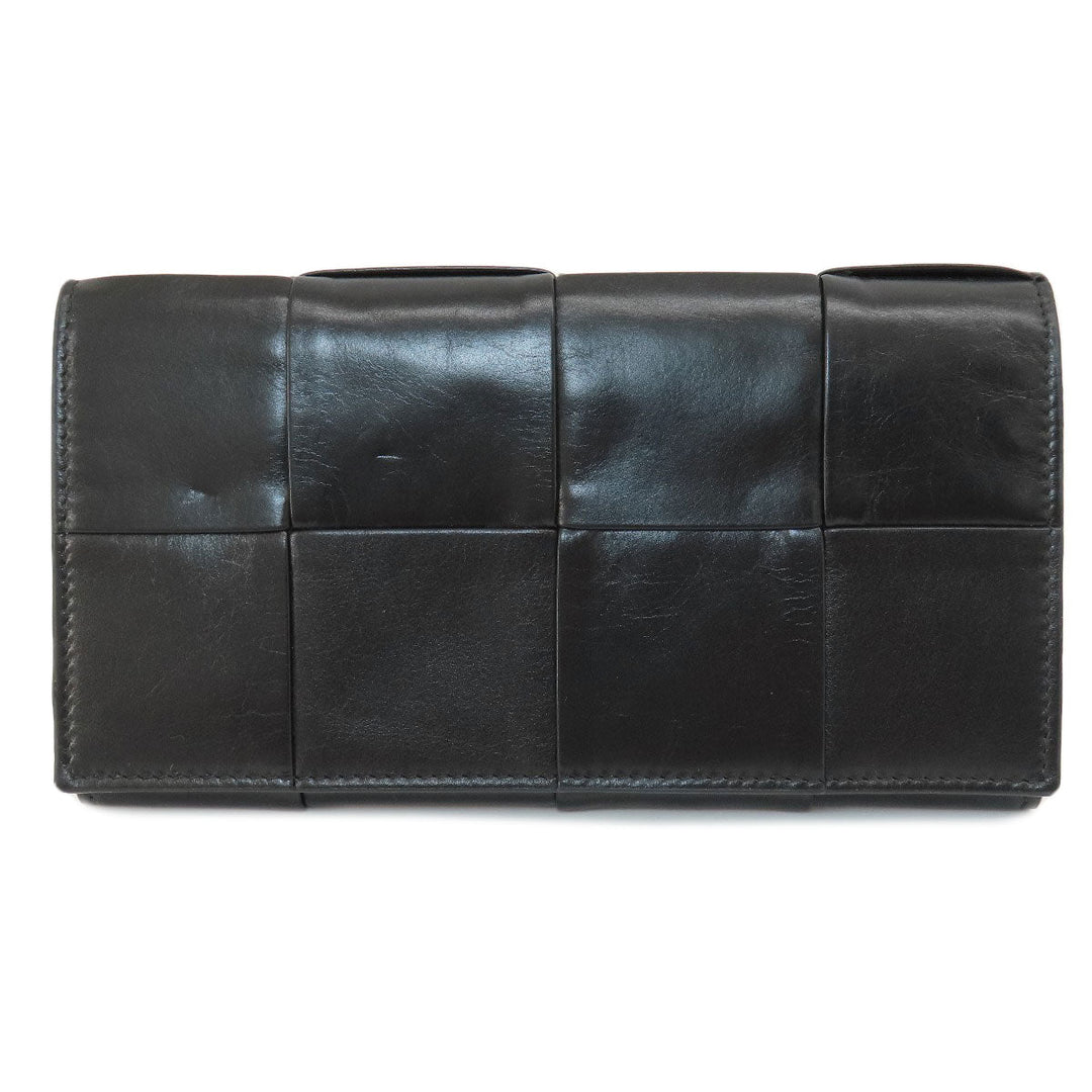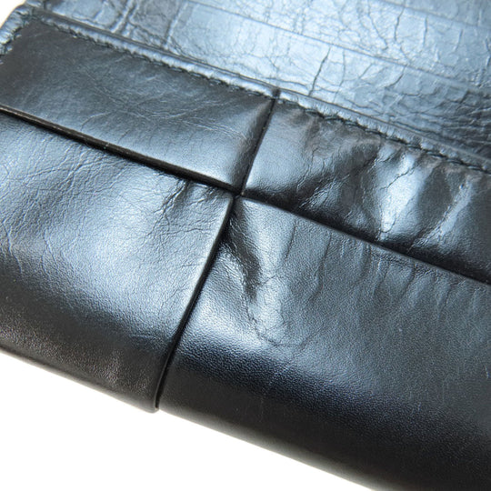 BOTTEGAVENETA Long Wallet Purse leather black MAXI INTRECCIATO mens Used Authentic