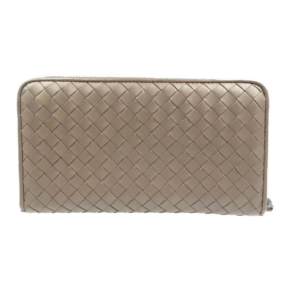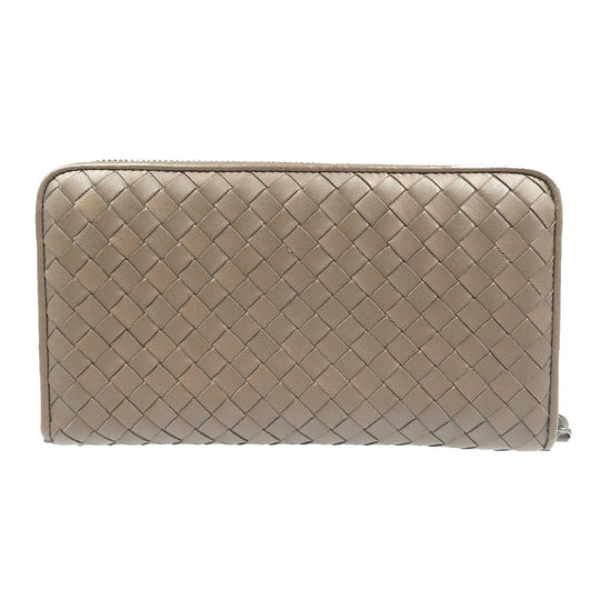 BOTTEGAVENETA Long Wallet Purse leather Brown Zip Around INTRECCIATO mens Used Authentic