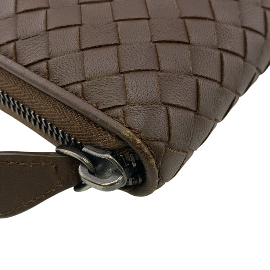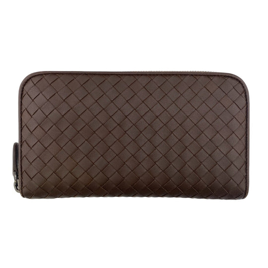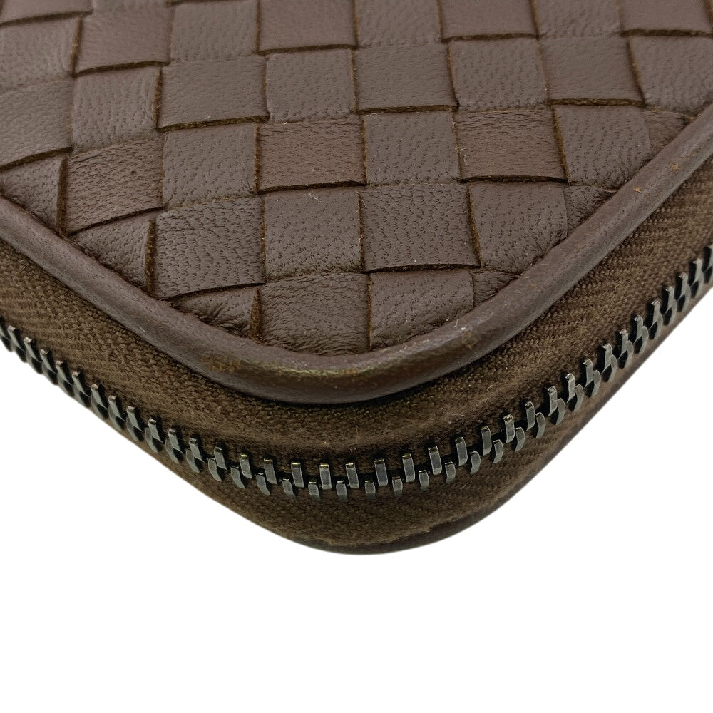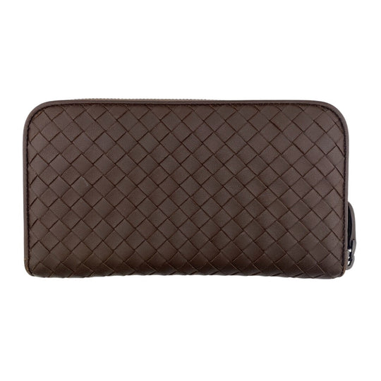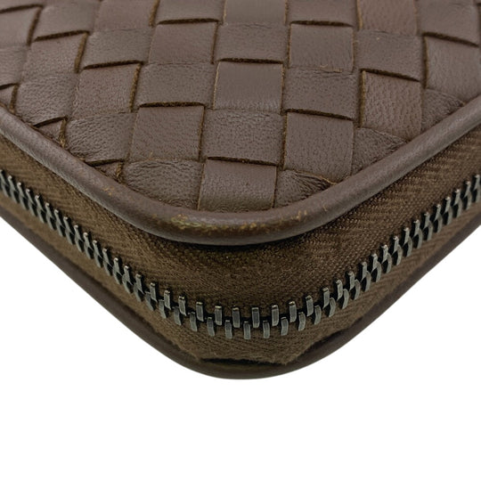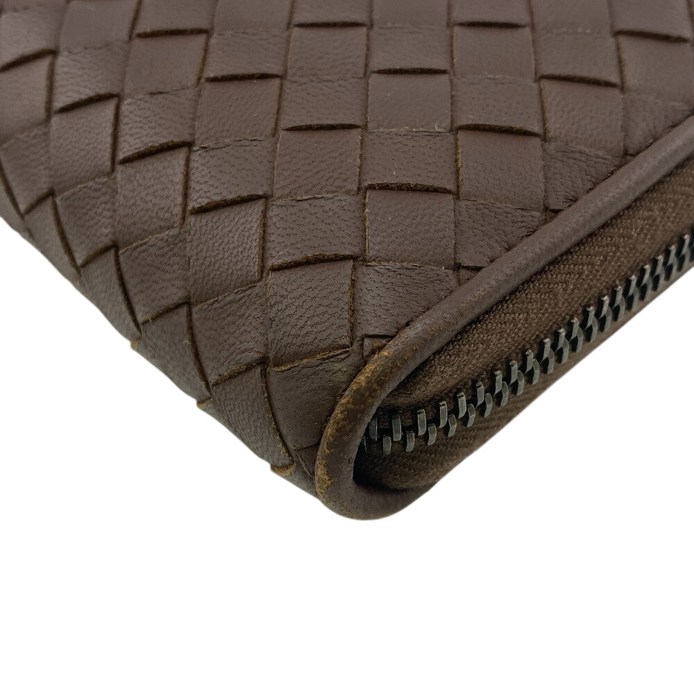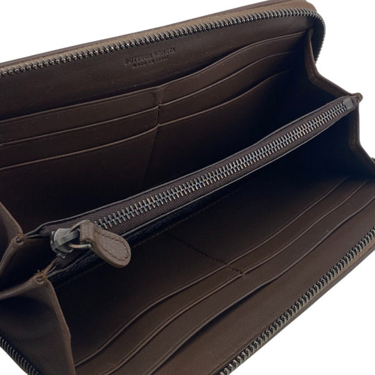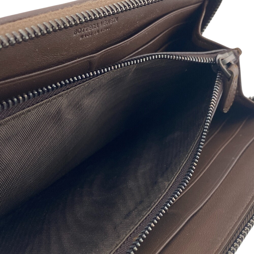 BOTTEGAVENETA Long Wallet Purse leather Brown Zip Around INTRECCIATO mens Used Authentic