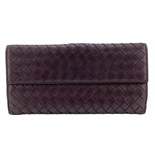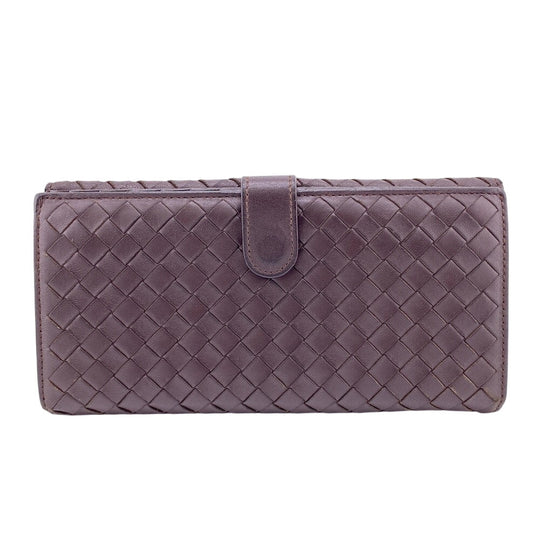 BOTTEGAVENETA Long Wallet Purse leather Brown W Hook Wallet  Bifold Wallet INTRECCIATO mens Used Authentic