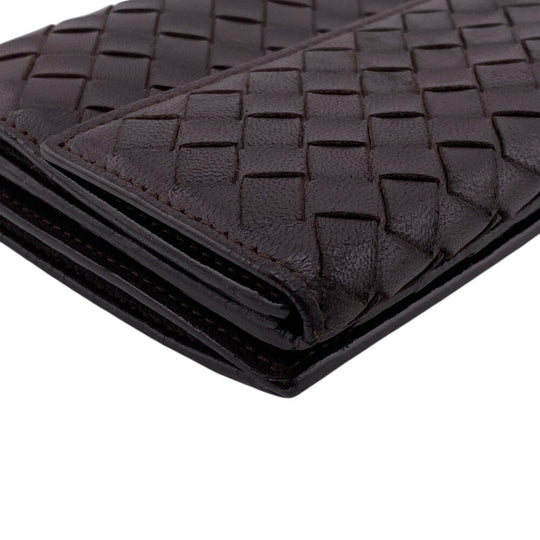BOTTEGAVENETA Long Wallet Purse leather Brown W Hook Wallet Bifold Wallet INTRECCIATO mens Used Authentic