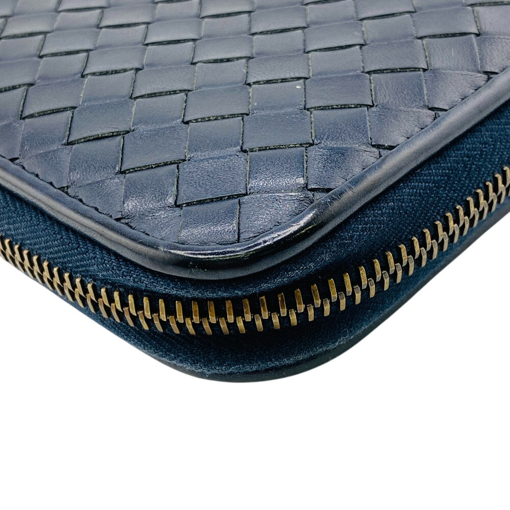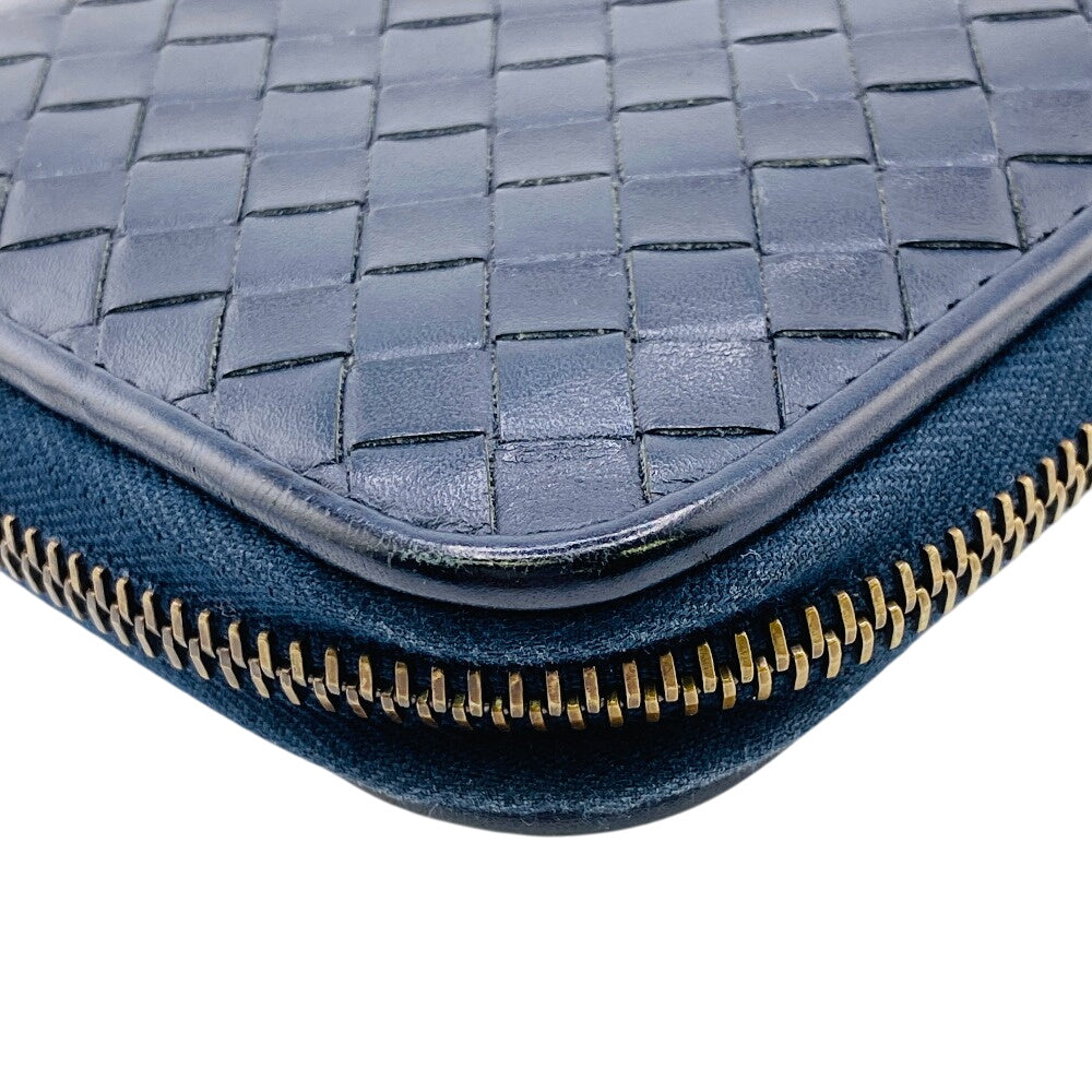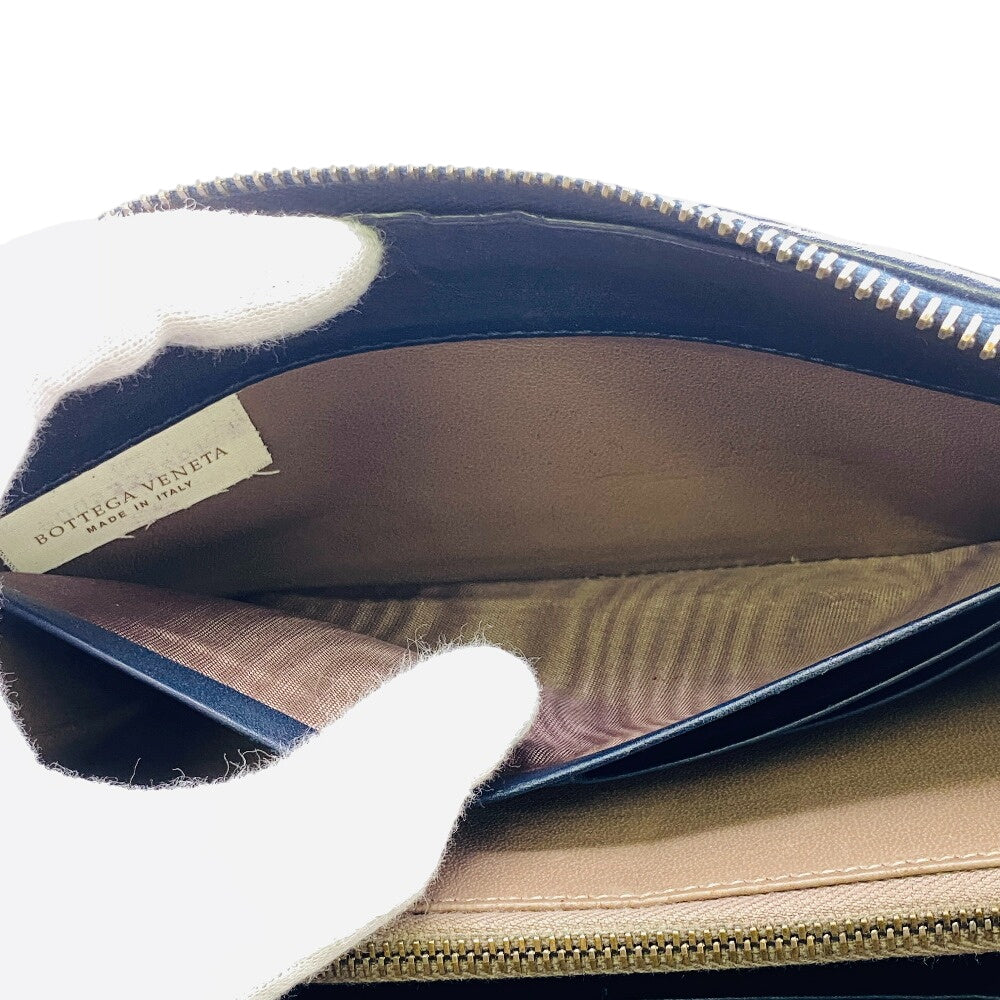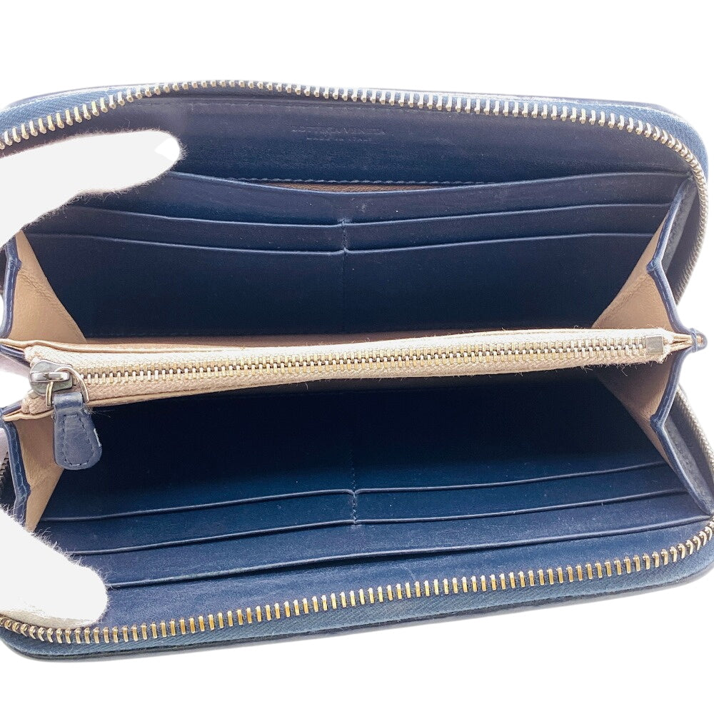 BOTTEGAVENETA Long Wallet Purse leather Navy Zip Around INTRECCIATO mens(Unisex) Used Authentic