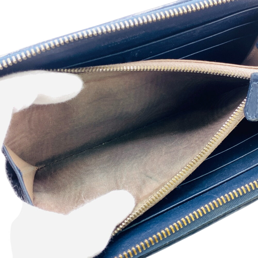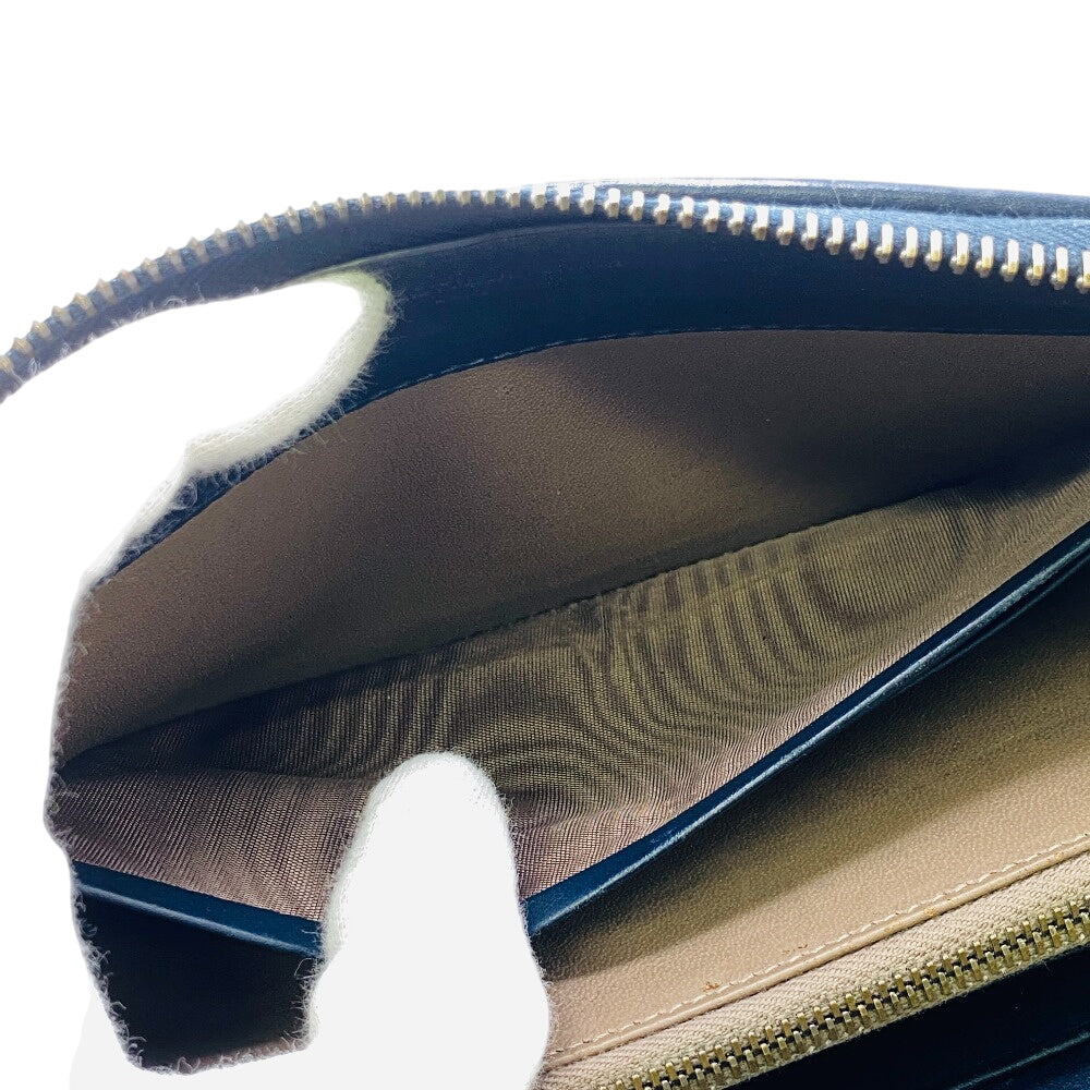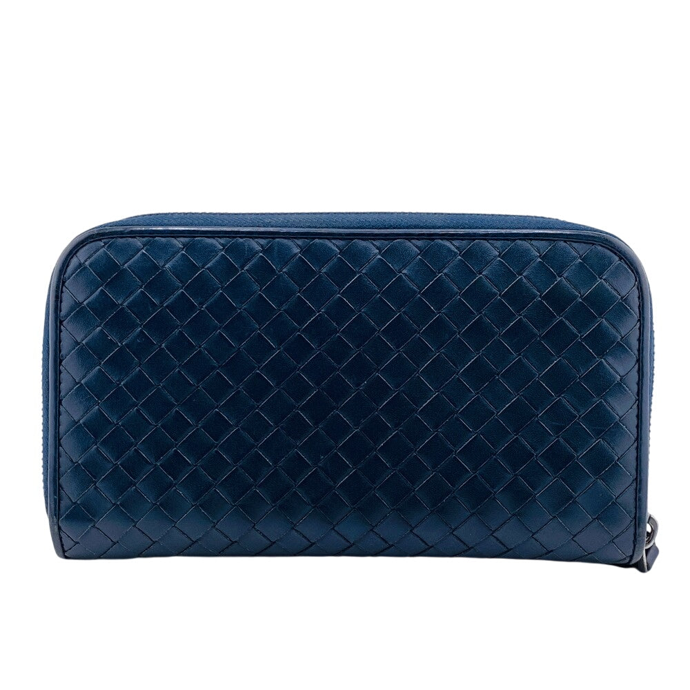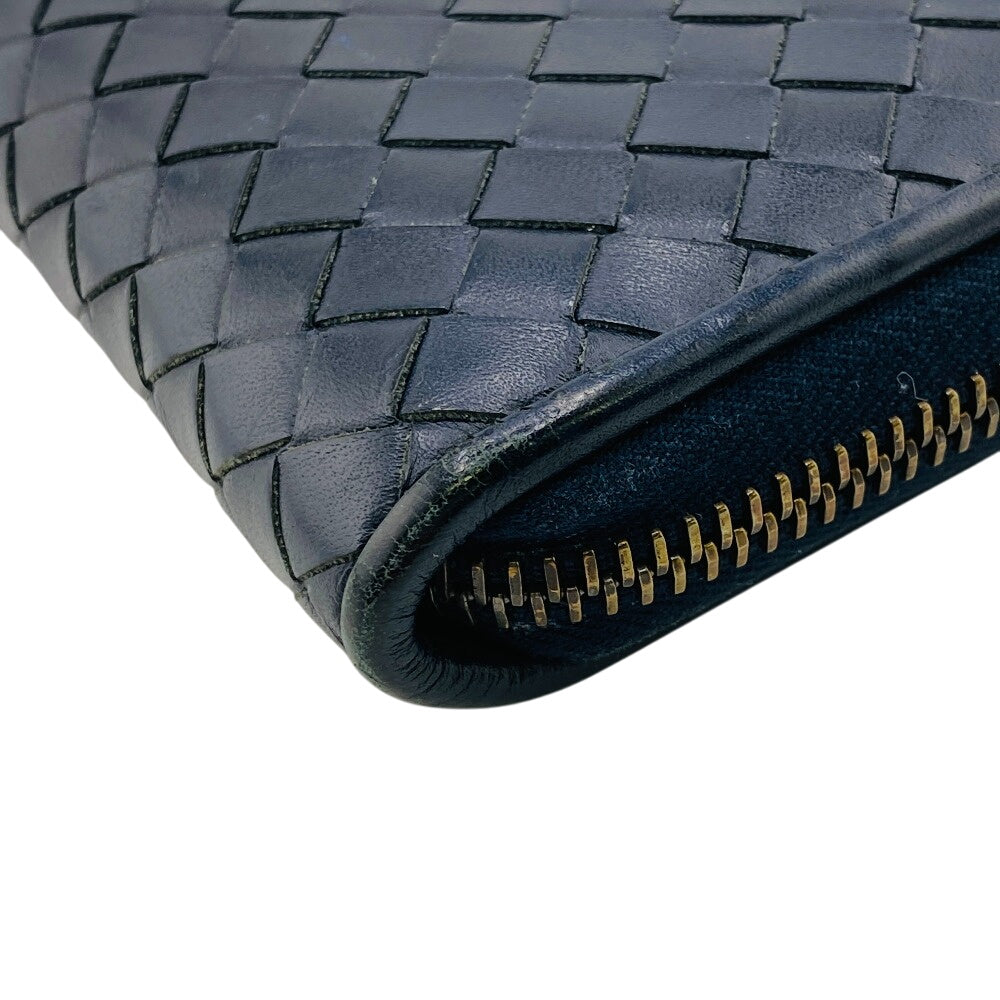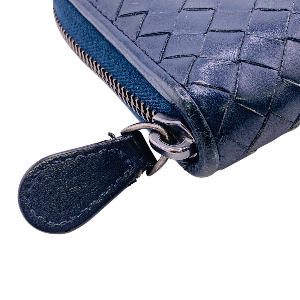 BOTTEGAVENETA Long Wallet Purse leather Navy Zip Around INTRECCIATO mens(Unisex) Used Authentic