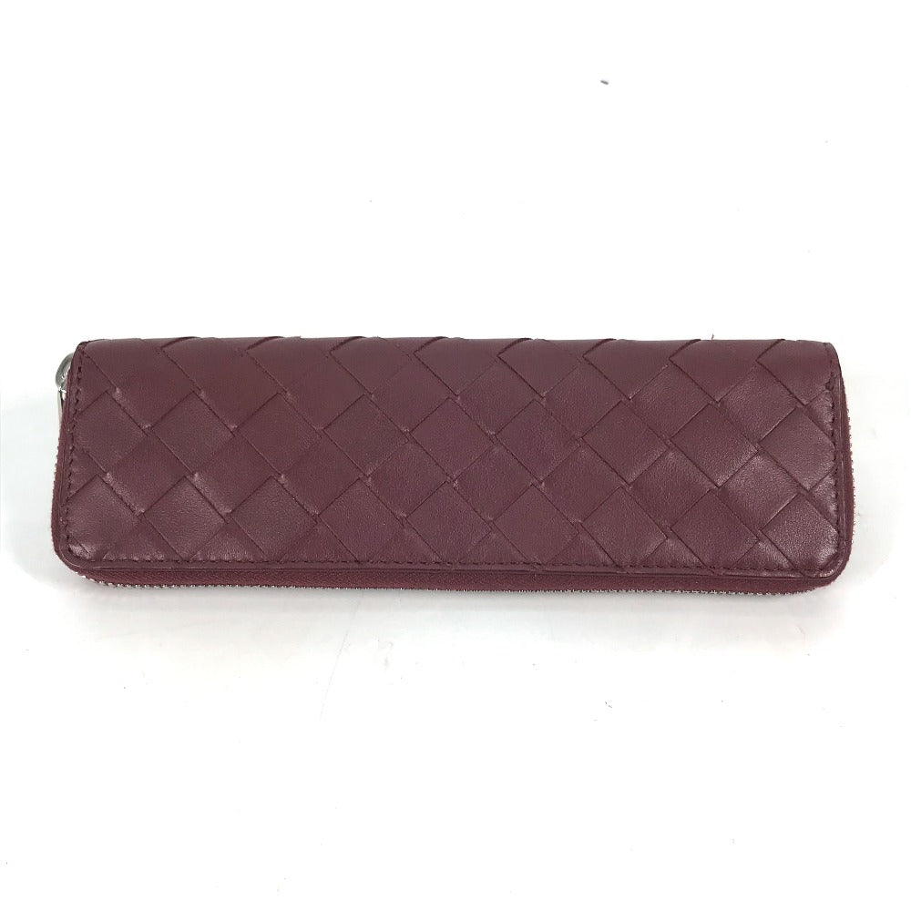 BOTTEGAVENETA pencil case leather wine-red INTRECCIATO Women Used Authentic