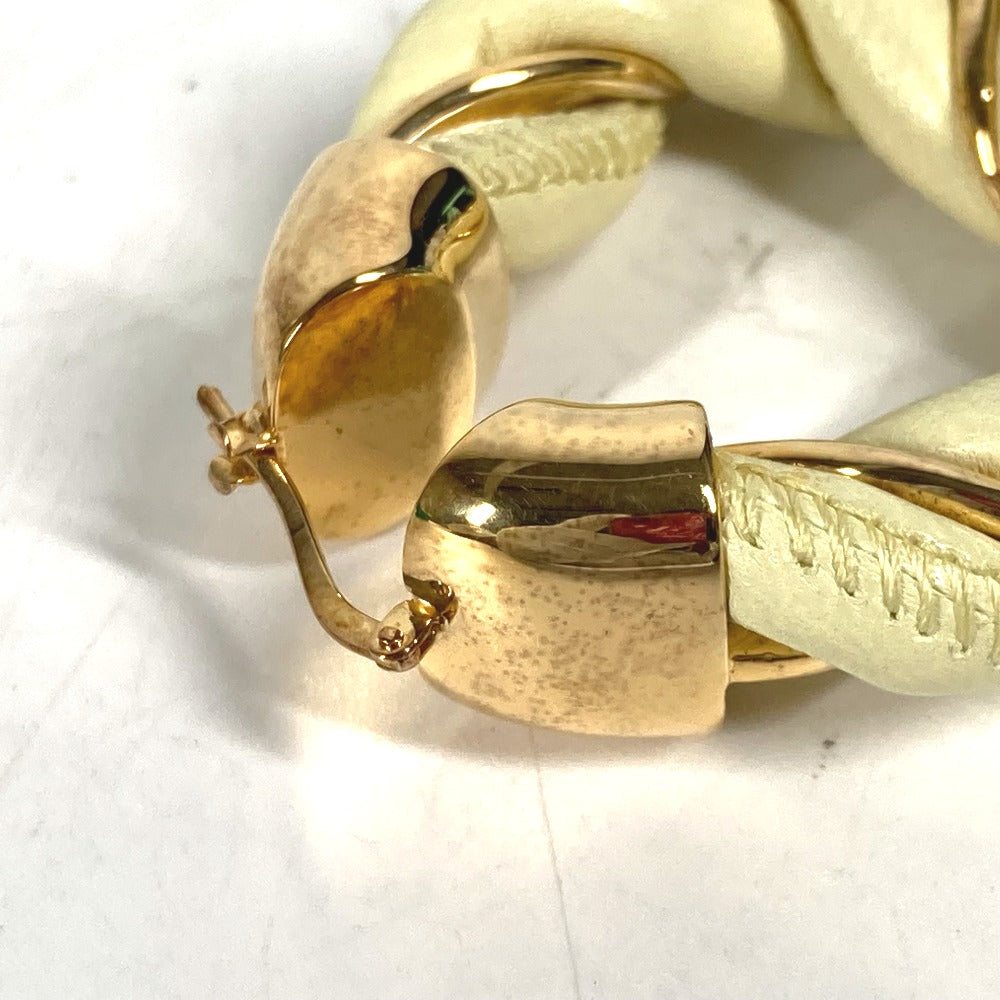 BOTTEGAVENETA Pierce Leather, AG925 Light yellow type Twisted Triangle Hoop Earrings Women Used Authentic