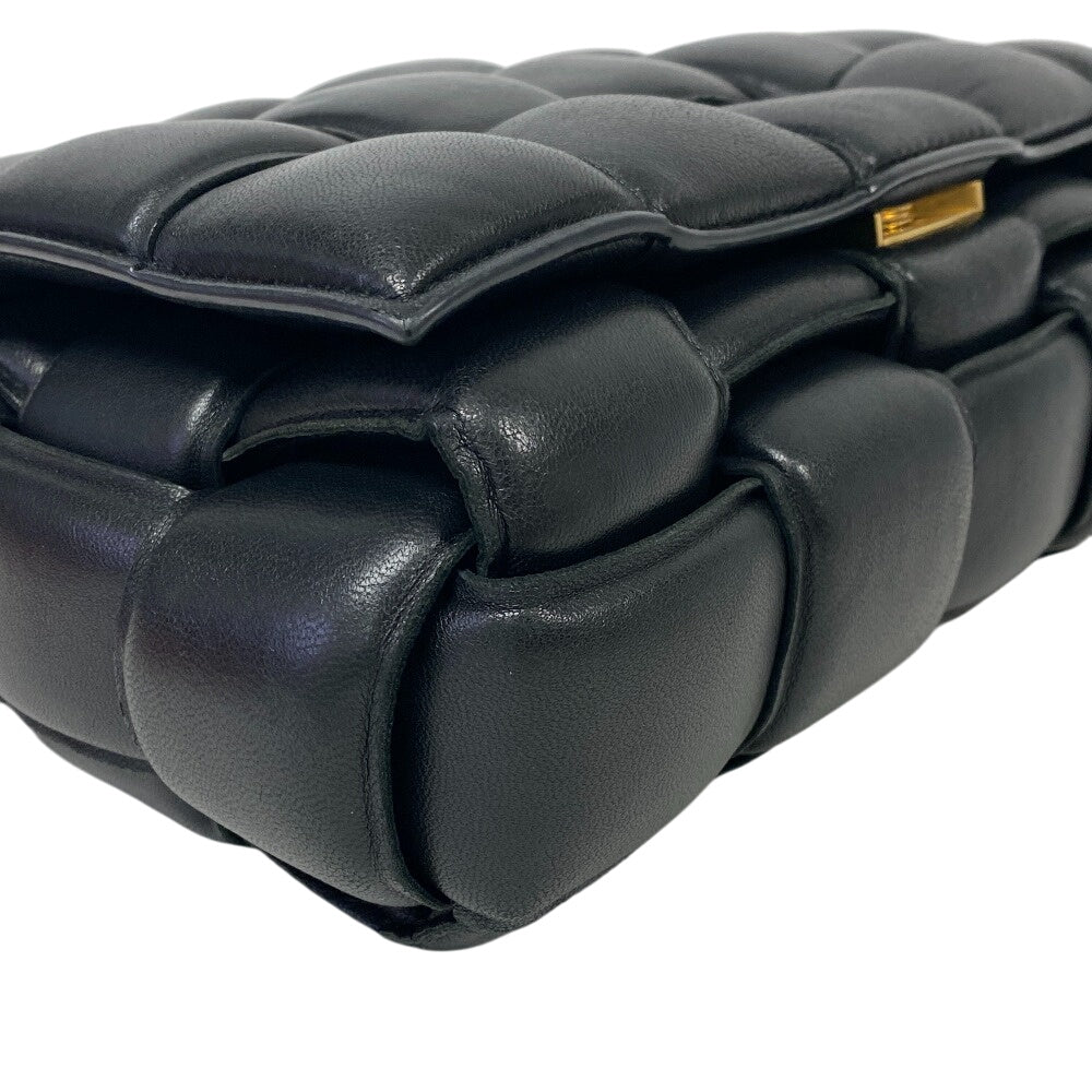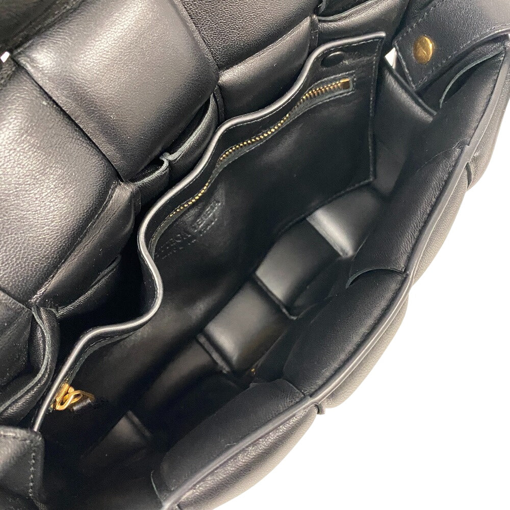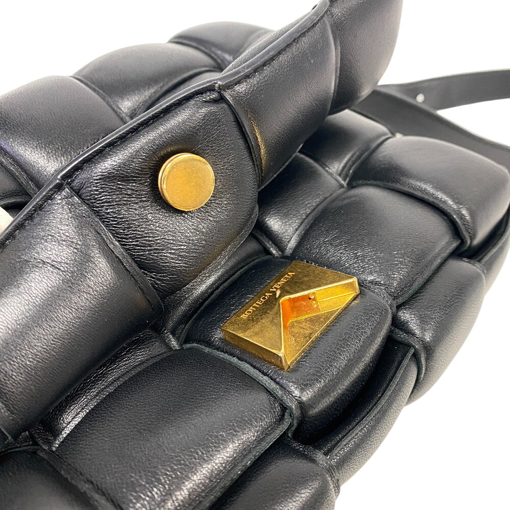 BOTTEGAVENETA Shoulder Bag leather black Padded cassette INTRECCIATO Women Used Authentic
