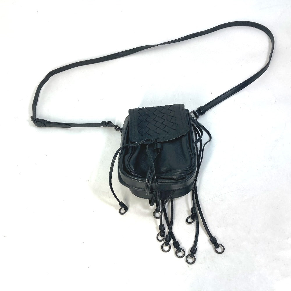 BOTTEGAVENETA Shoulder Bag leather black INTRECCIATO Pochette Crossbody