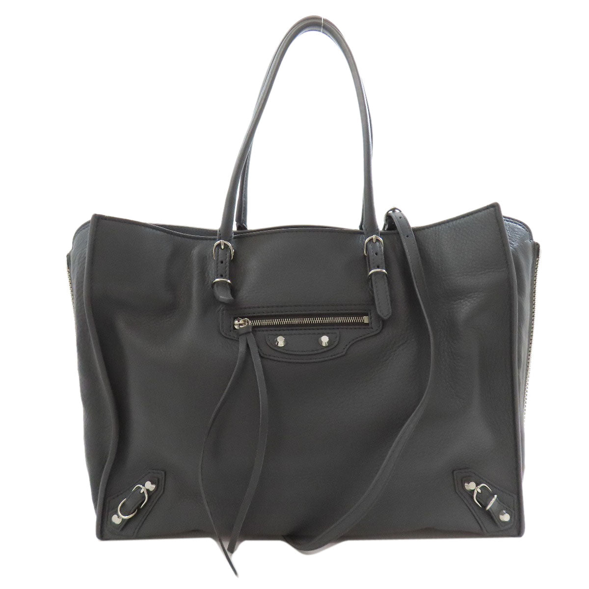 BALENCIAGA Tote Bag 387480 Mouton, Leather Black SilverMetal Tote Bag handbag paper Women Used Authentic