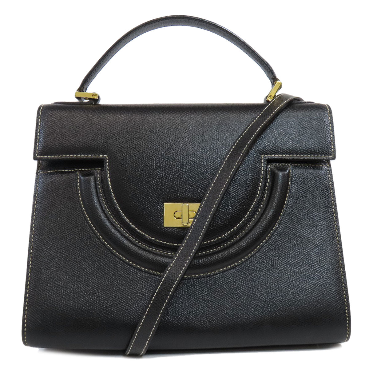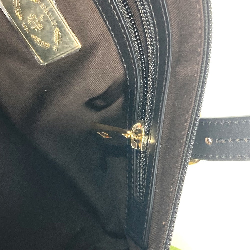 BALLY Handbag Leather / canvas green logo Cylindrical Women Used Authentic