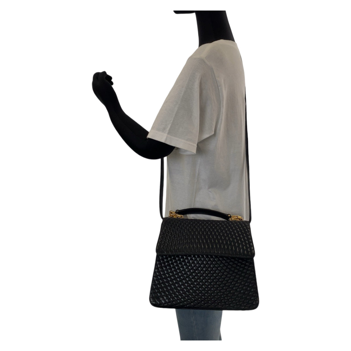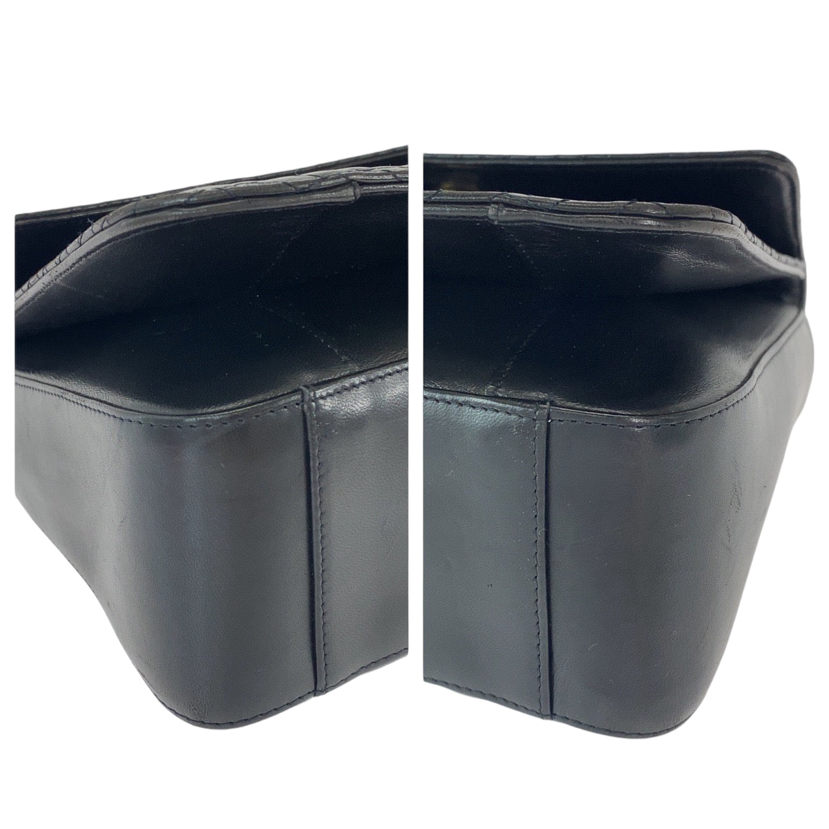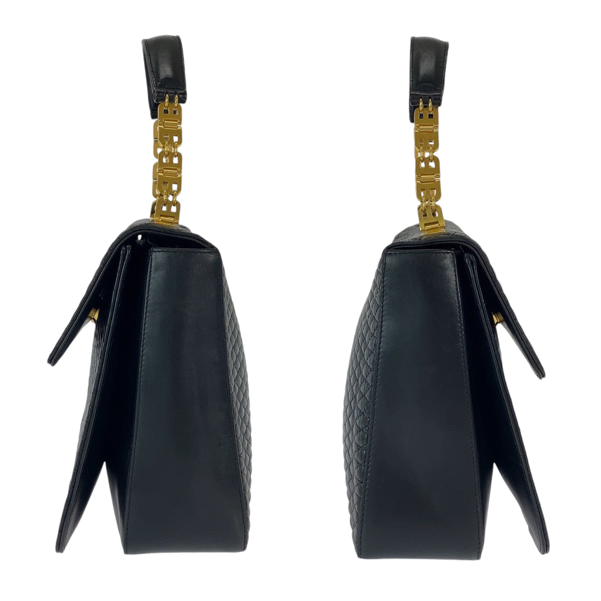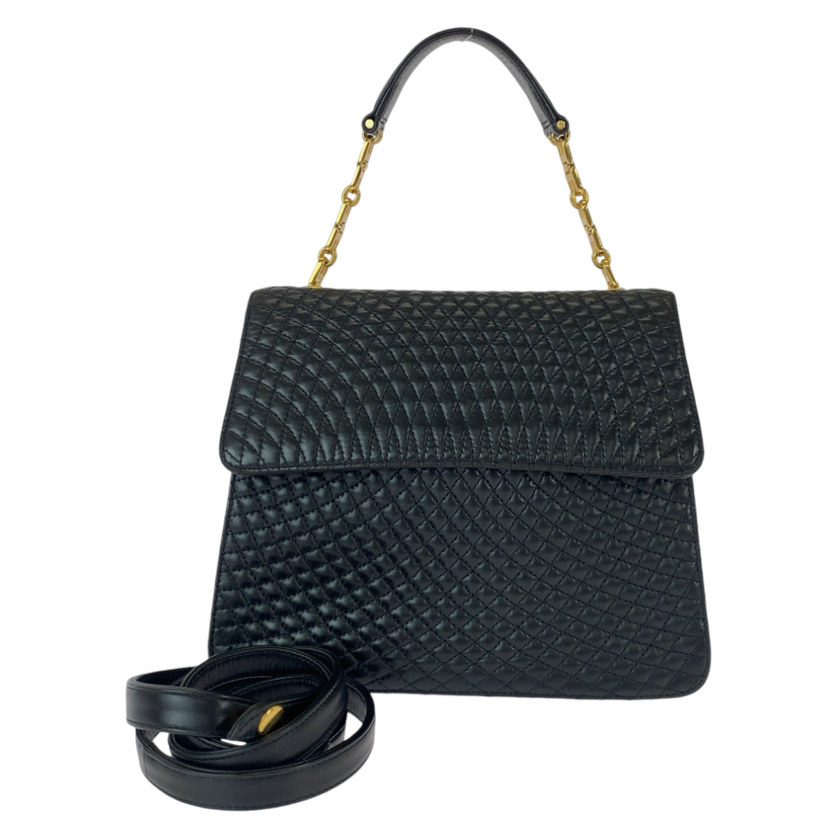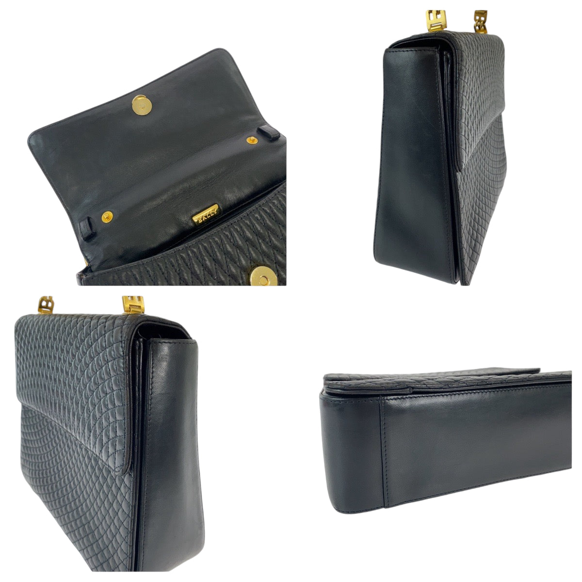 BALLY Shoulder Bag leather Black Gold Metal Shoulder Bag Handbag 2way quilting Women Used Authentic