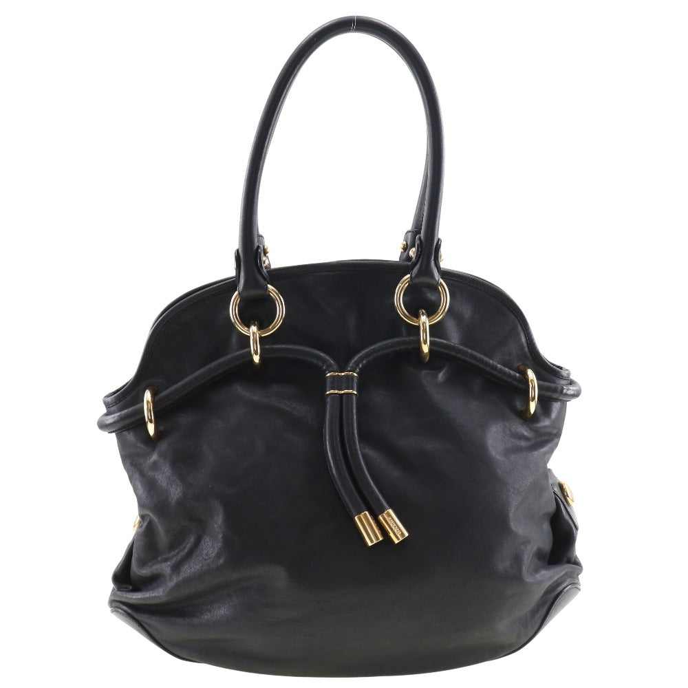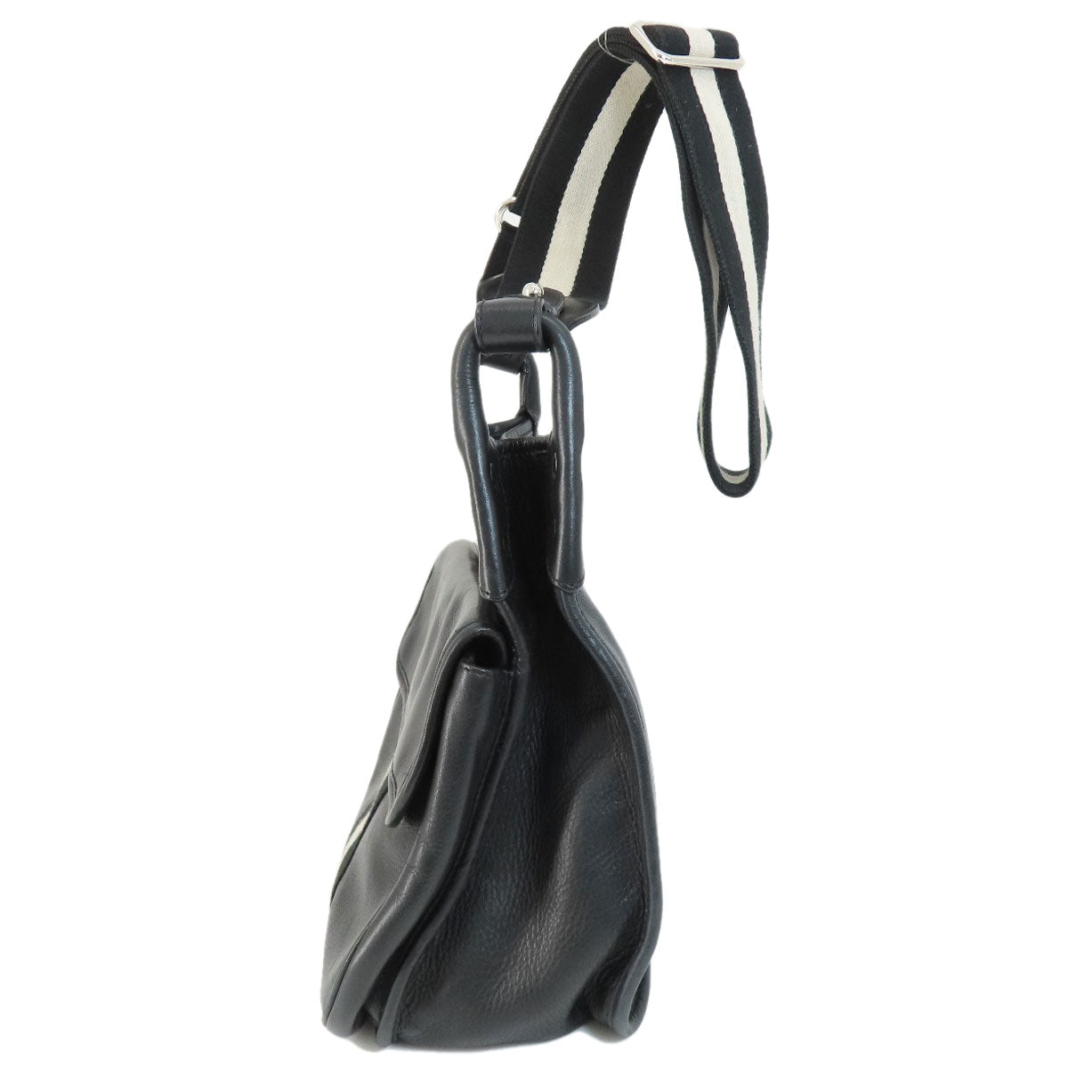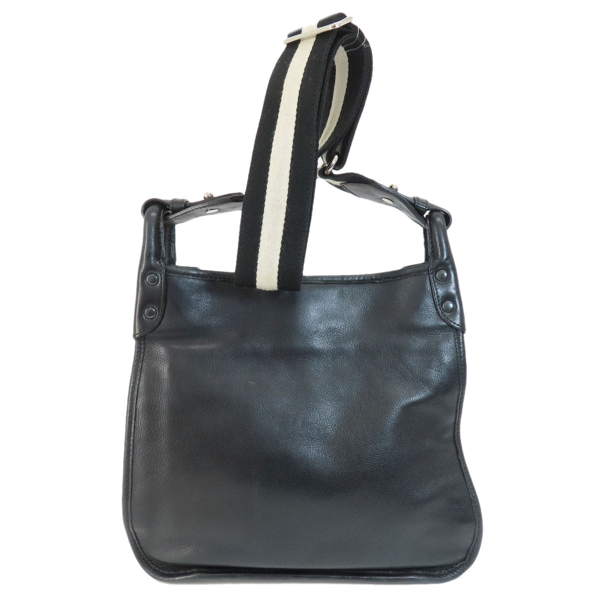 BALLY Shoulder Bag leather black stripe Women Used Authentic