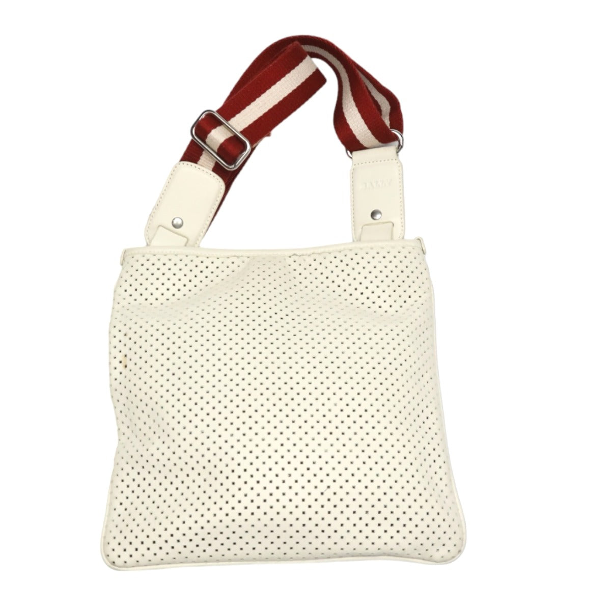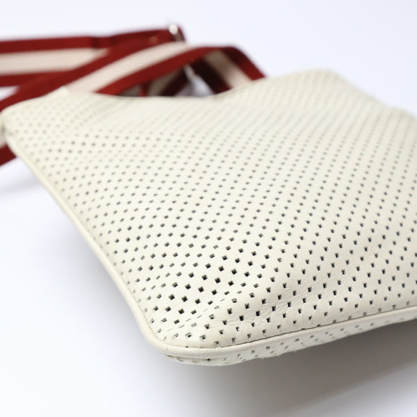 BALLY Shoulder Bag Punching leather white Punching leather Diagonal Shoulder belt Women Used Authentic