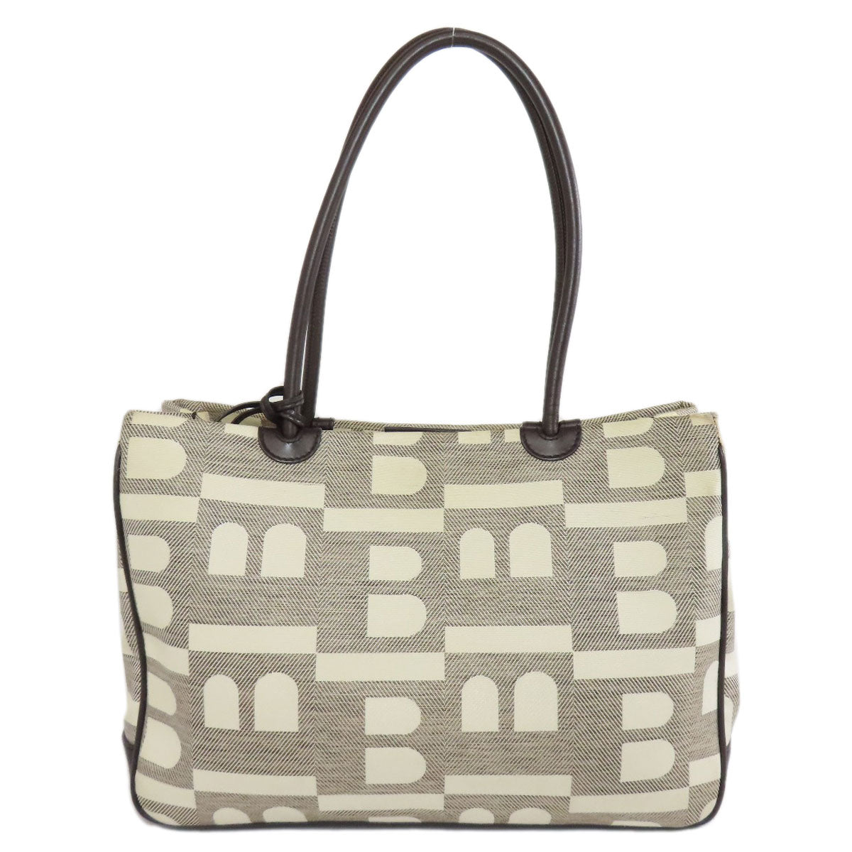 BALLY Tote Bag canvas Brown logo Women Used Authentic