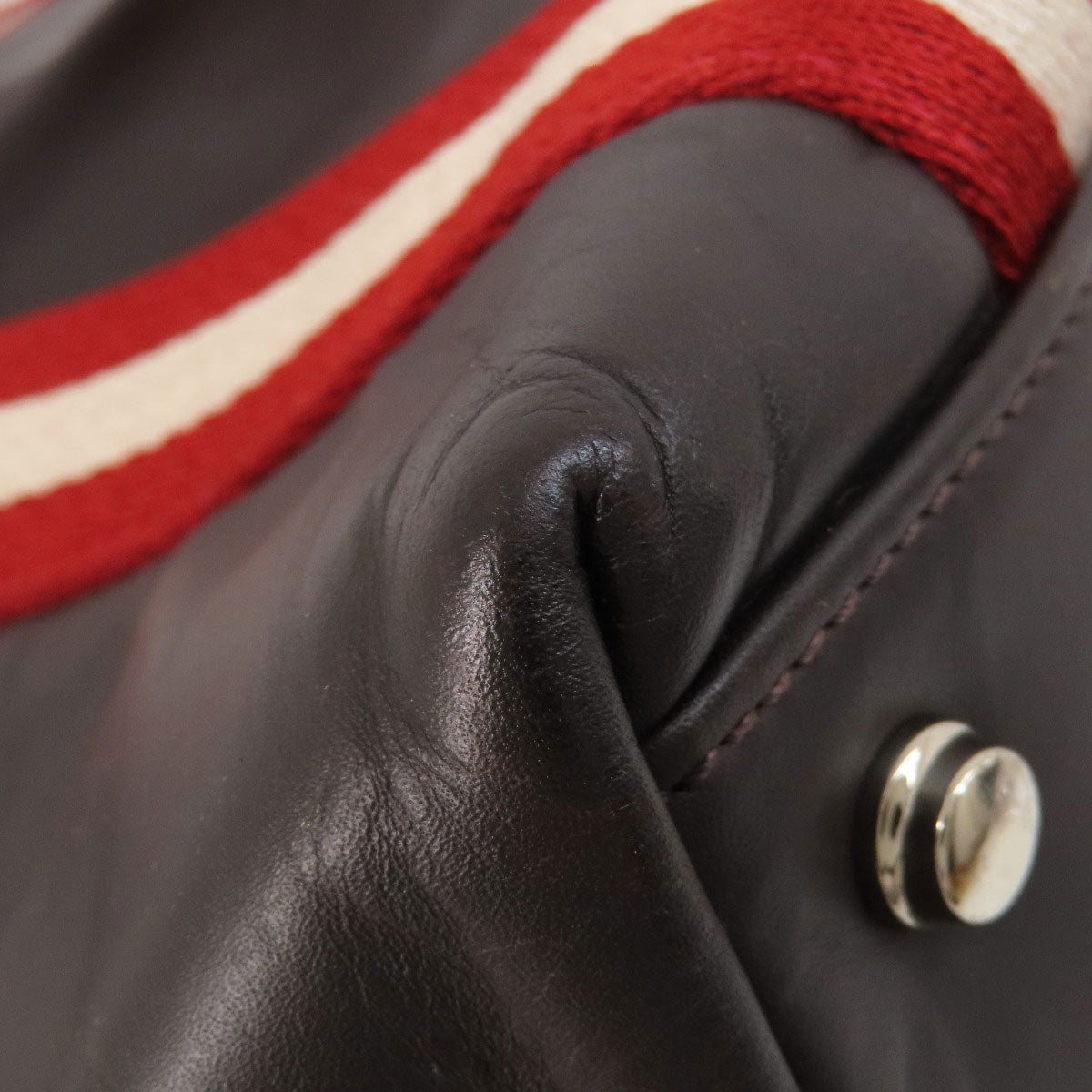 BALLY Tote Bag leather Brown Barry Stripe Women Used Authentic
