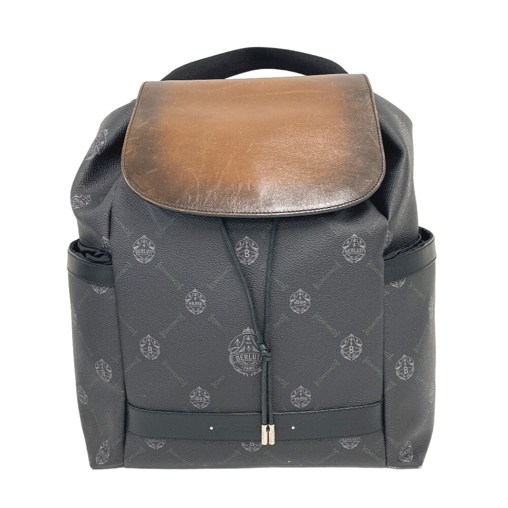 Berluti Backpack Nylon, Leather Navy Scritto Calligraphy Backpack mens Used Authentic