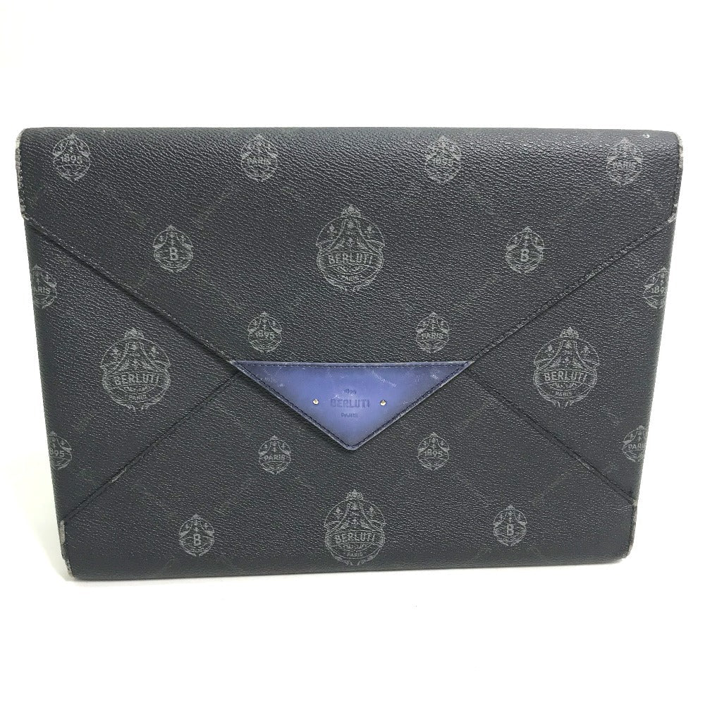 Berluti Clutch bag E1129 leather black Signature business bag mens Used Authentic