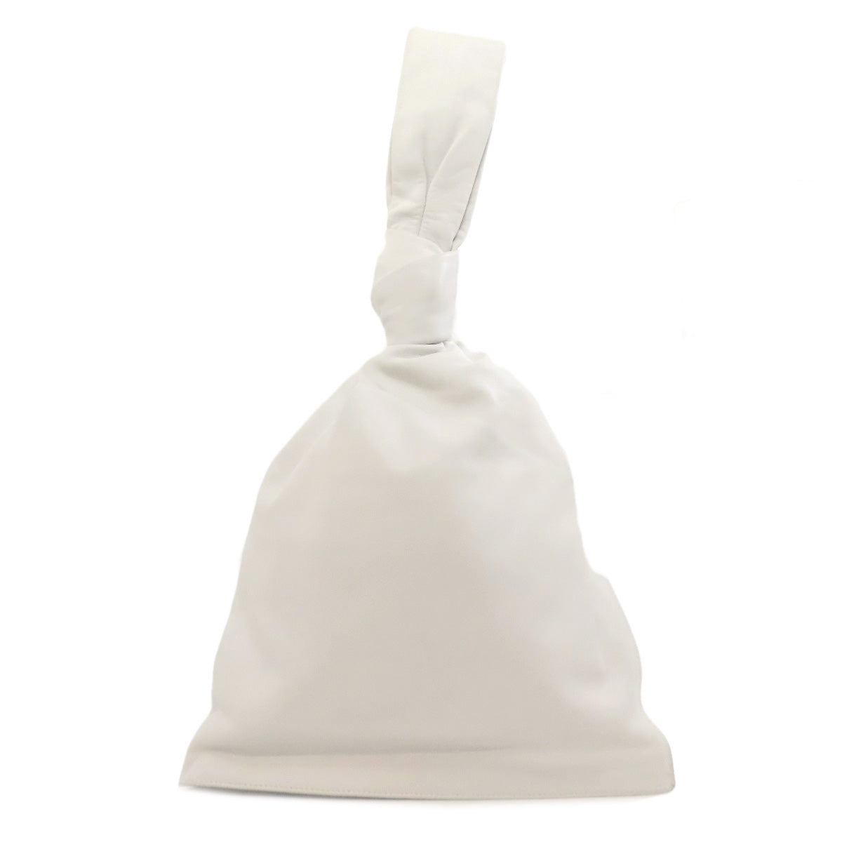 BOTTEGAVENETA Handbag leather white Pouch Double knot Women Used Authentic