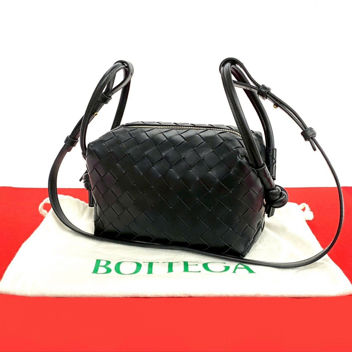 BOTTEGAVENETA Shoulder Bag leather black Simple design Women Used Authentic