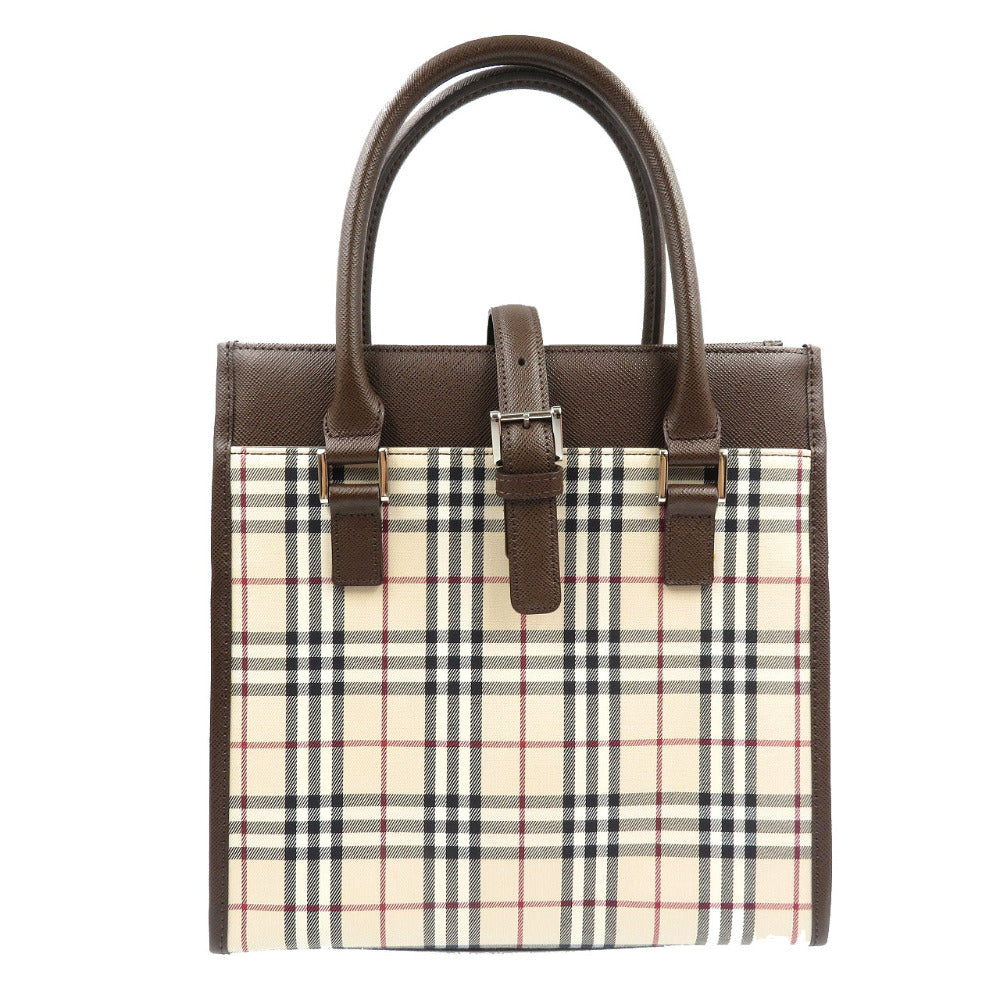 BURBERRY Handbag Canvas, Leather Brown Nova Check Women Used Authentic
