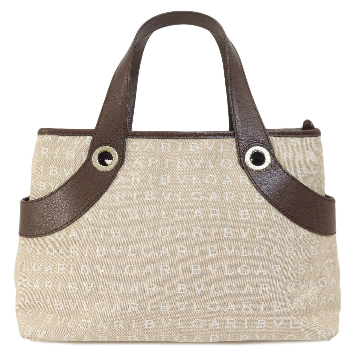 BVLGARI Handbag canvas beige Mini Tote Bag Logomania Women Used Authentic