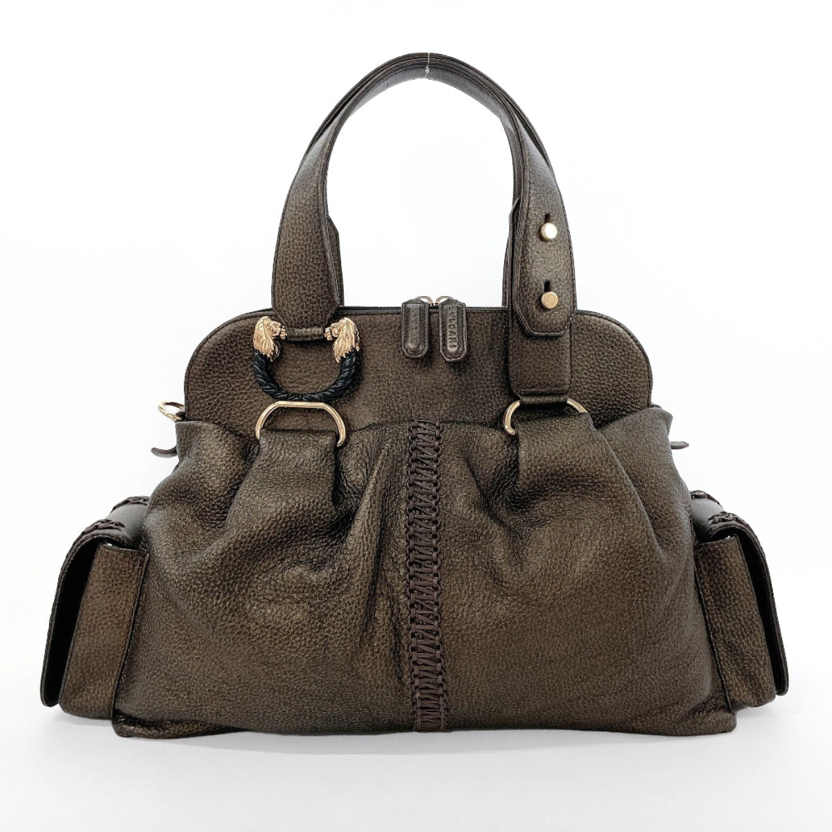 BVLGARI Handbag leather Brown Gold Metal Handbag Boston Duffel bag BVLGARI BVLGARI TURNLOCK Women Used Authentic