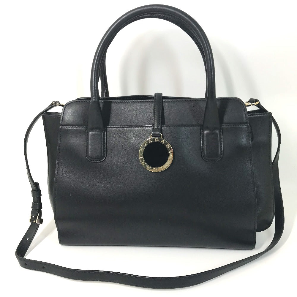 BVLGARI Shoulder Bag leather black bag shawl S.bulgari logo Women Used Authentic