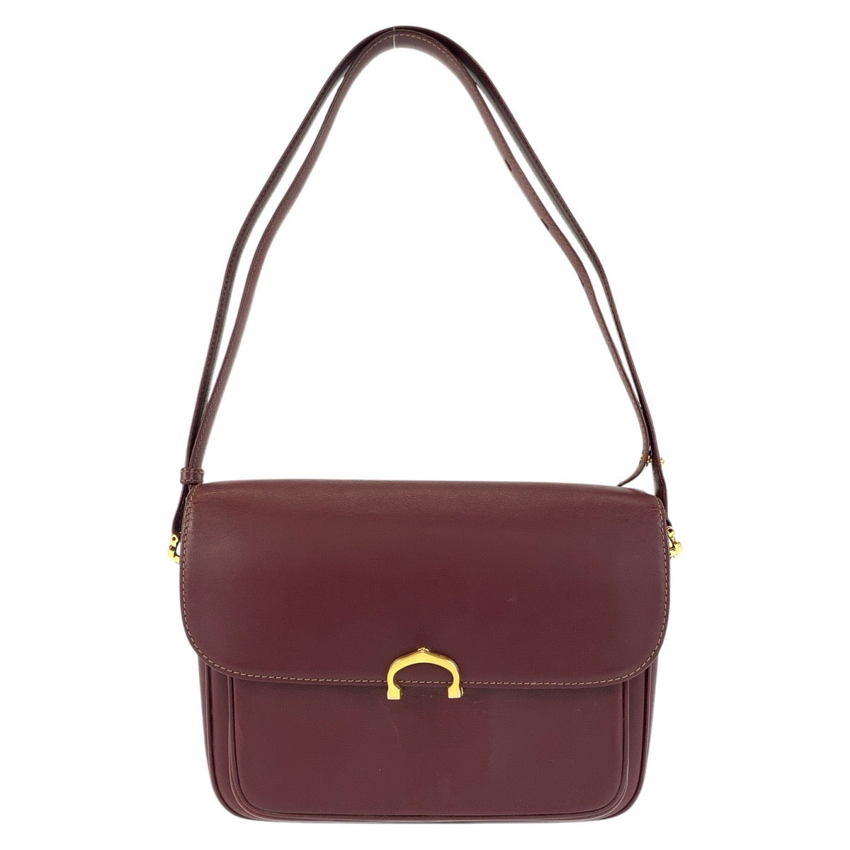 CARTIER Shoulder Bag leather Bordeaux Gold Metal Shoulder Bag Messenger bag Must Line Women Used Authentic