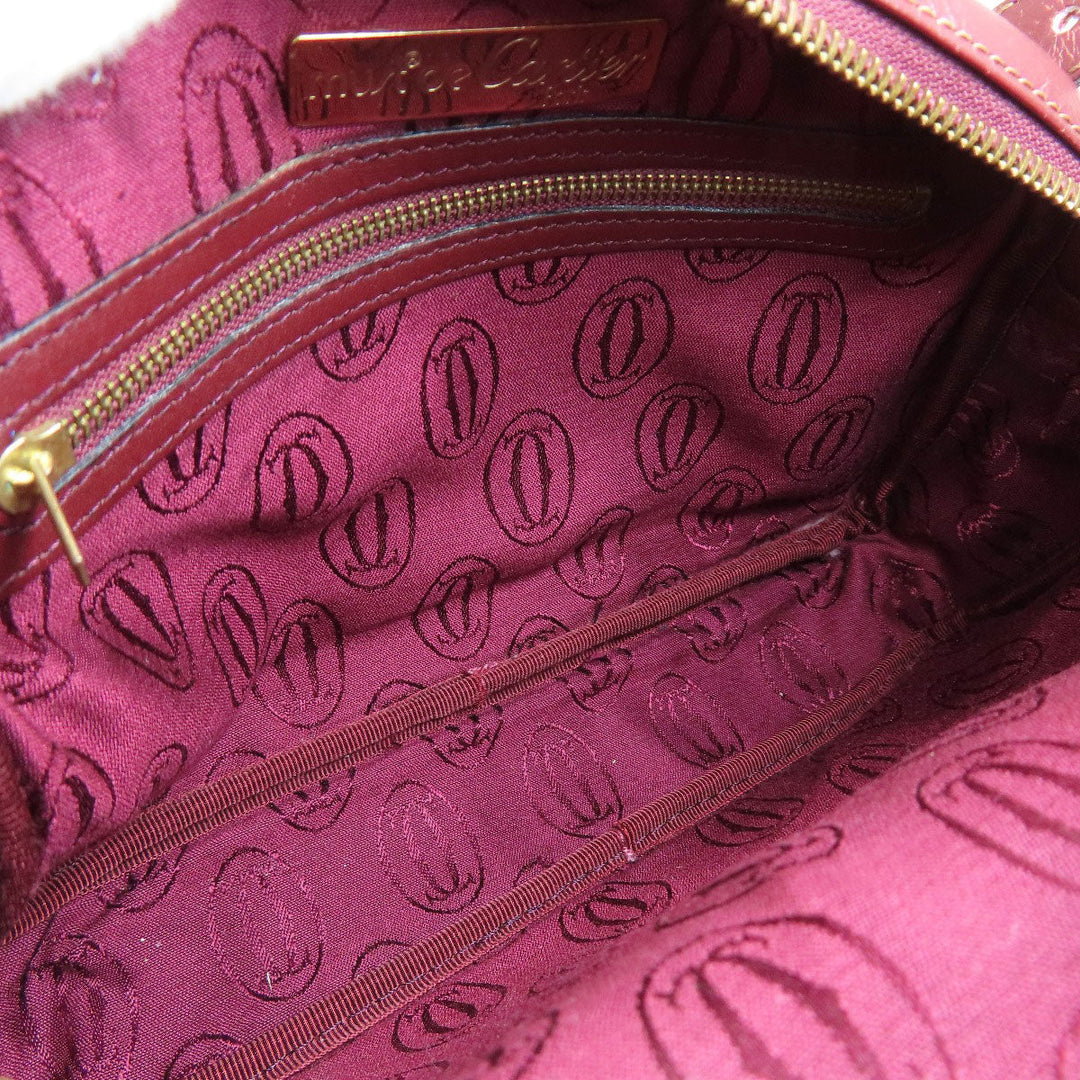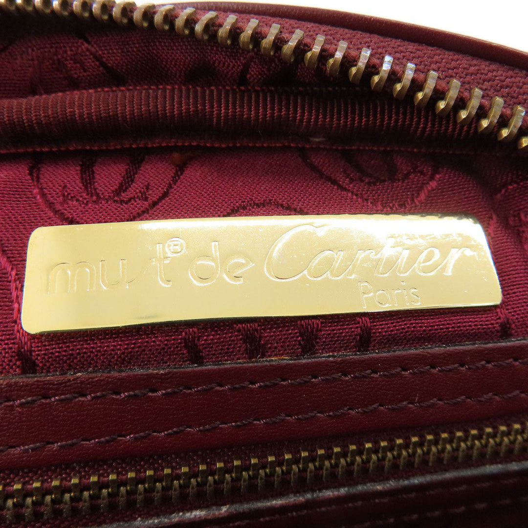 CARTIER Shoulder Bag leather wine-red Must Line Women Used Authentic