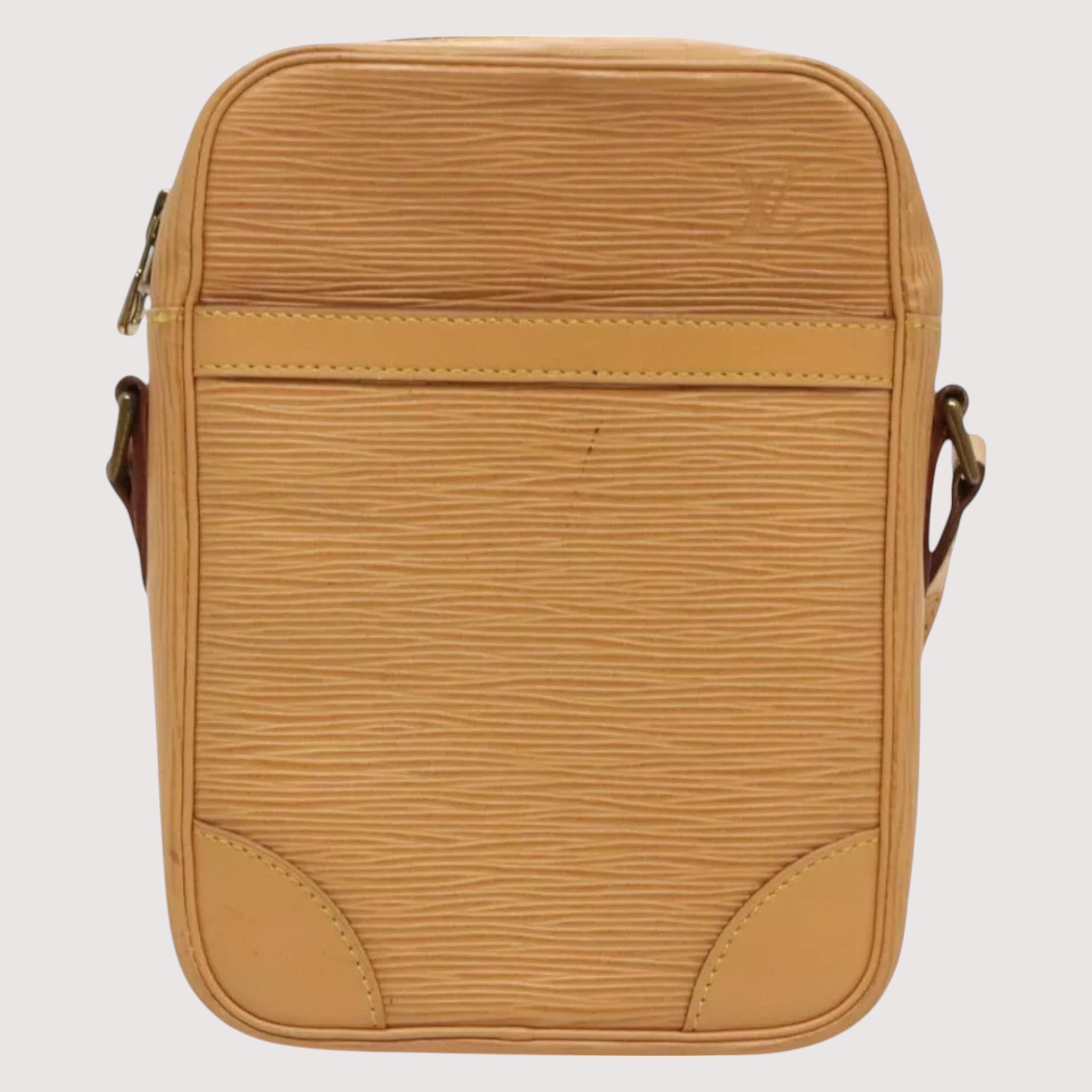 Condition - Surface out of shape and rubbing. Leather sun burn, rubbing, and stain. Shoulder strap sun burn, rubbing, stain, and slight crack. Metal fittings scratches, inside rubbing, pocket rubbing, and dirt peeling. Corner rubbing. Storage smell.