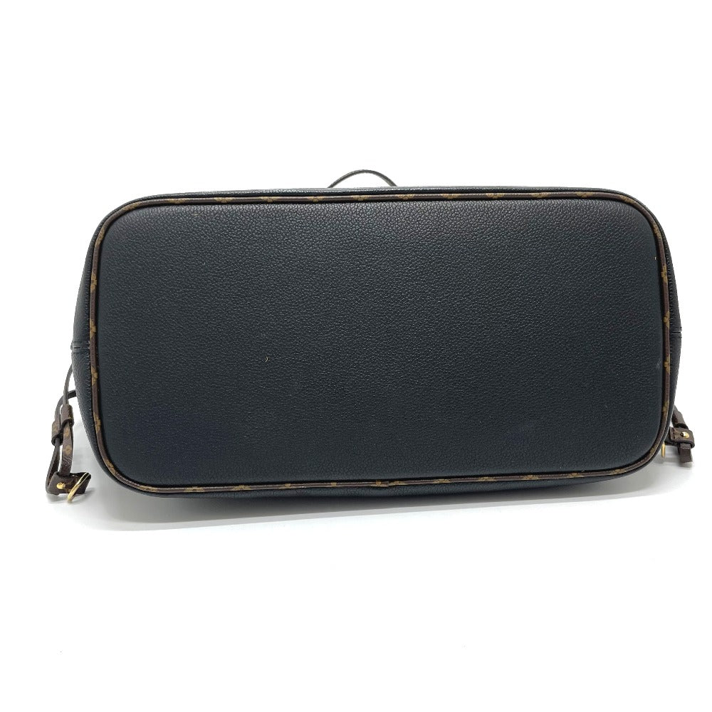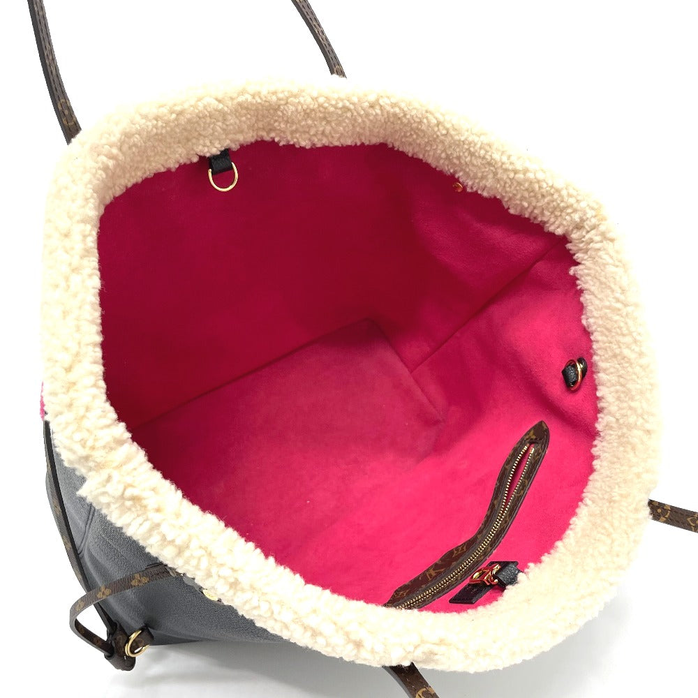 LOUIS VUITTON Tote Bag M56960 Calf leather black Shearling Monogram Flower LV Initials Neverfull MM Women Used Authentic