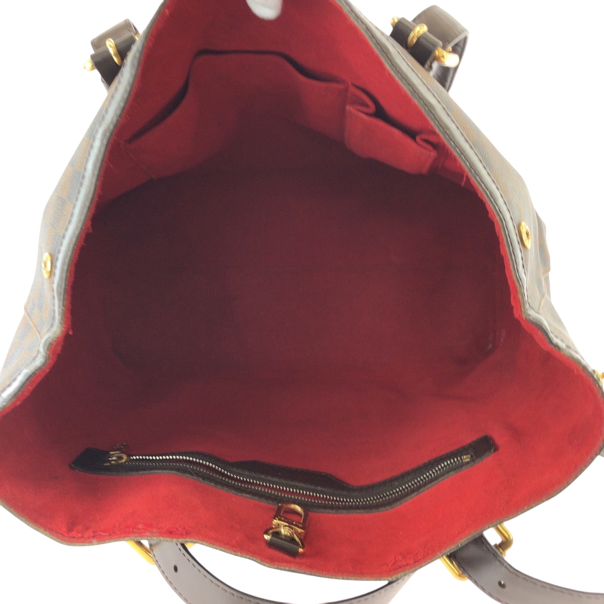 LOUIS VUITTON Tote Bag N51204 PVC Brown Gold Metal Tote Bag Shoulder Bag Damier Ebene HamsteadMM Women Used Authentic