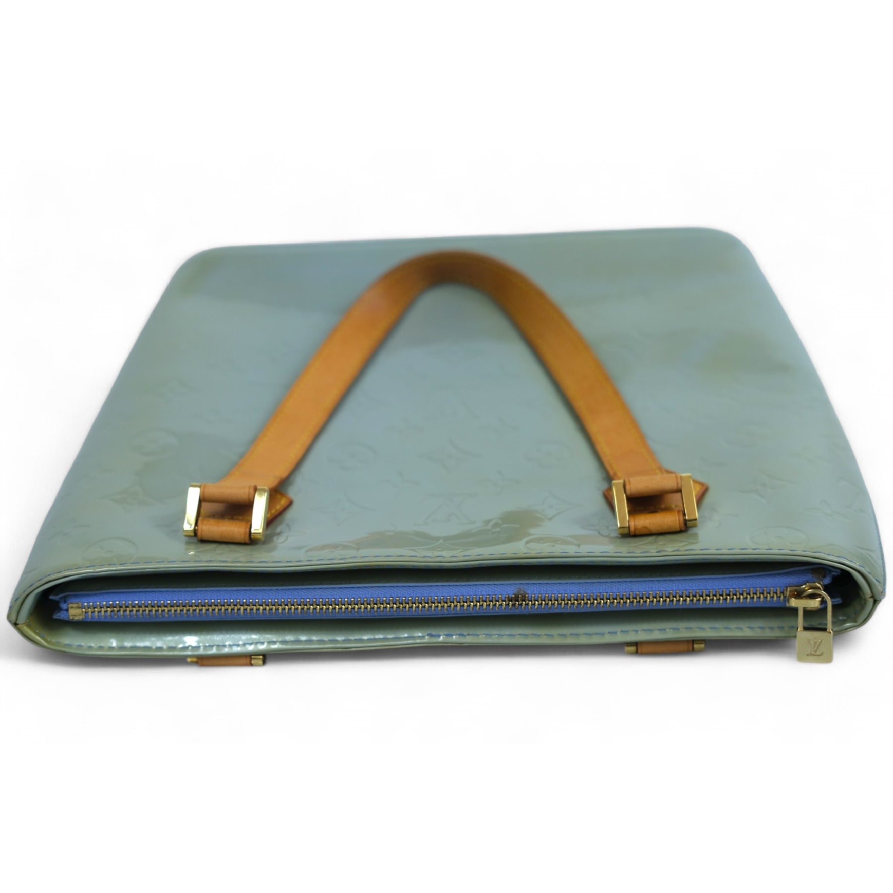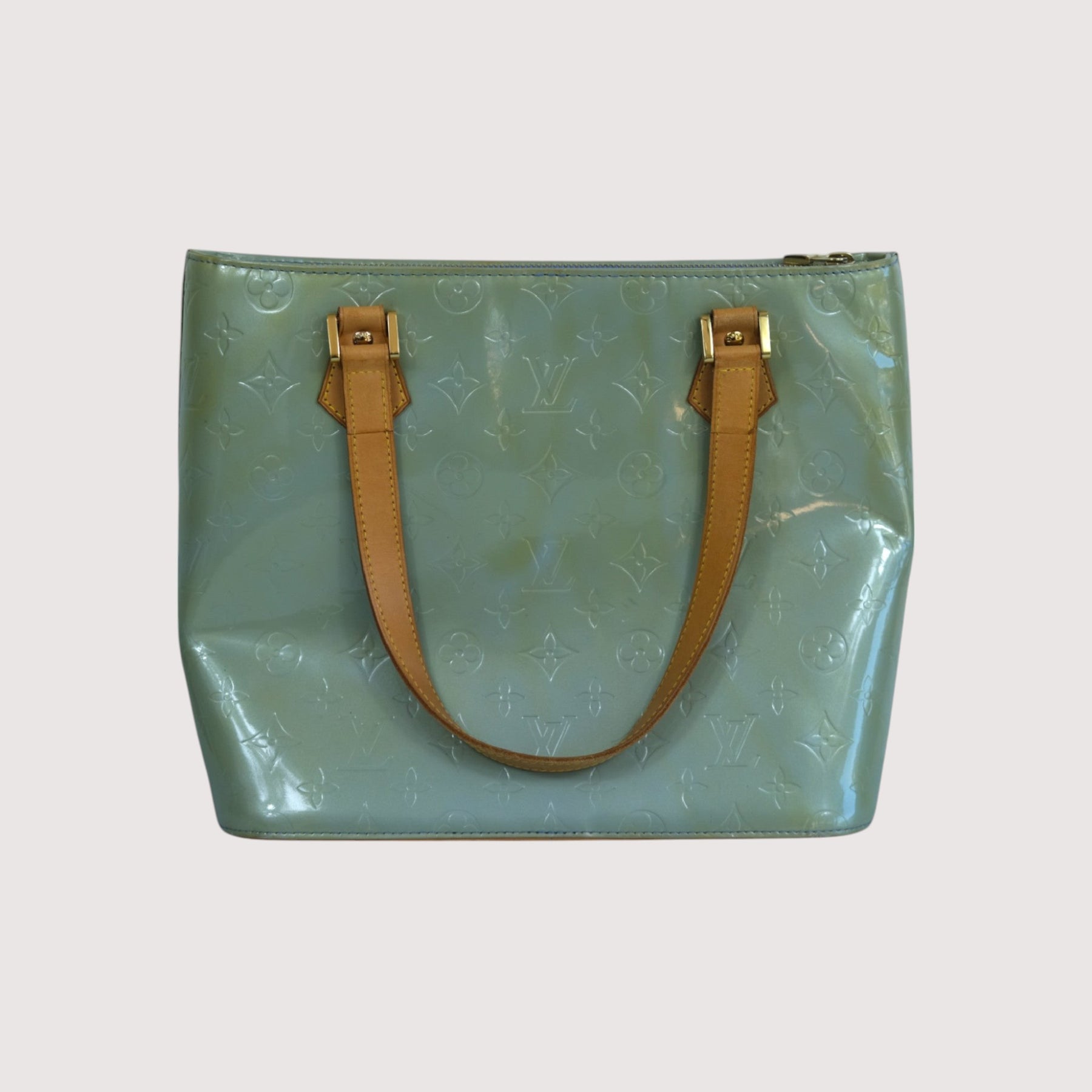 Louis Vuitton Vernis Houston Tote Green Monogram Patent Leather Shoulder Bag Women's Handbag