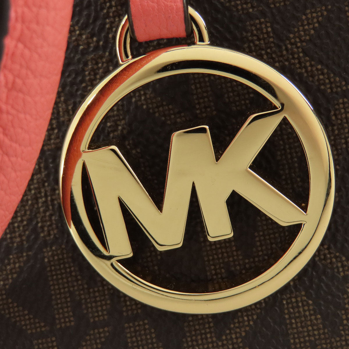 MICHAEL KORS Handbag Leather, Coated Canvas Brown MK Signature 2WAY Women Used Authentic