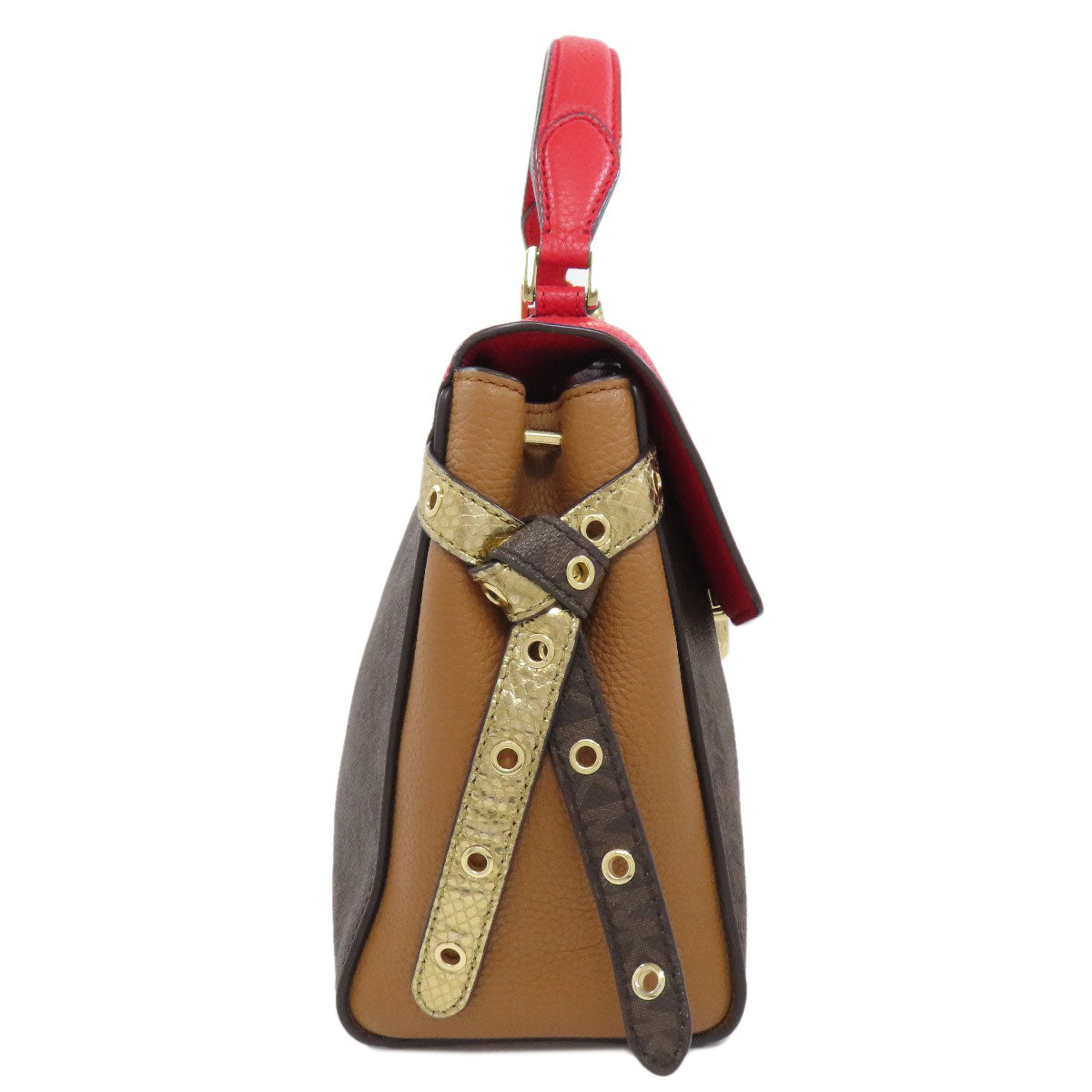 MICHAEL KORS Handbag PVC Brown MK Signature 2WAY Women Used Authentic