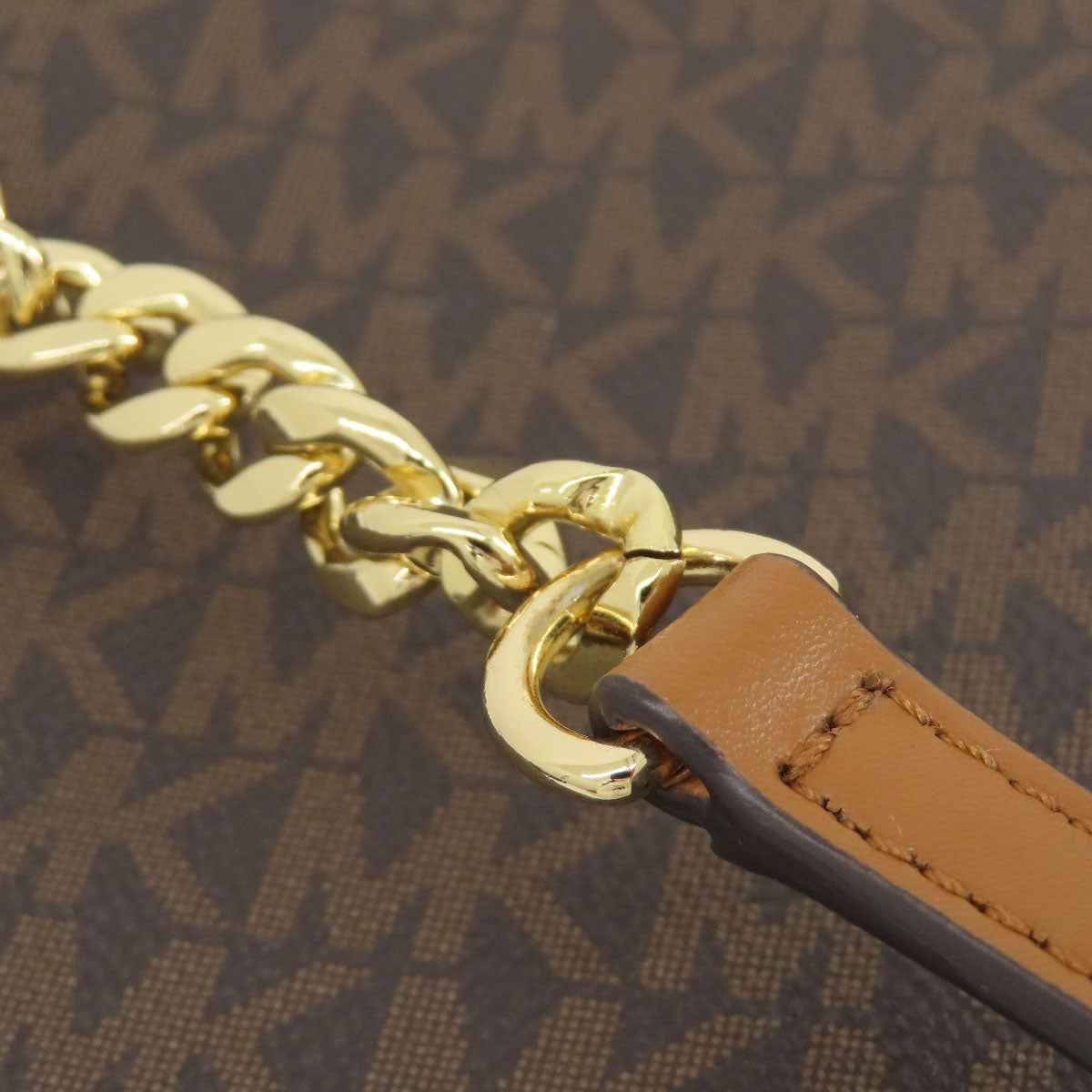 MICHAEL KORS Shoulder Bag Leather, Coated Canvas Brown MK signature Women Used Authentic