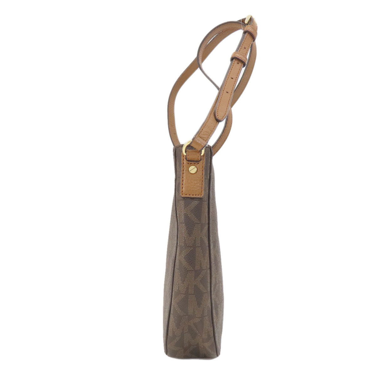 MICHAEL KORS Shoulder Bag Leather, Coated Canvas Brown MK signature Women Used Authentic