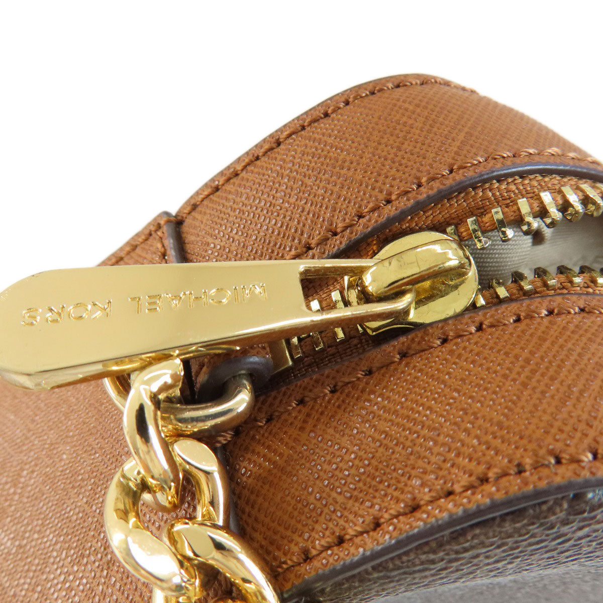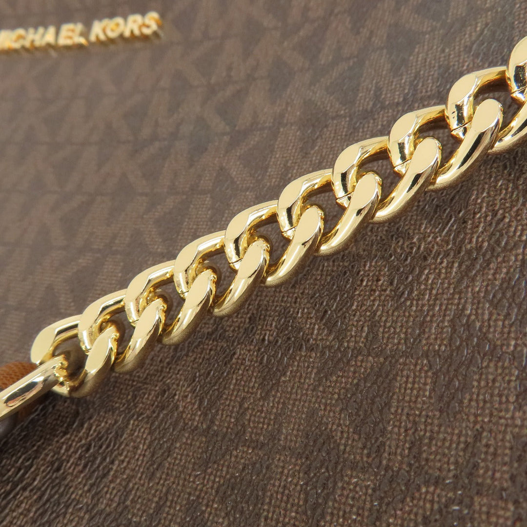 MICHAEL KORS Shoulder Bag Leather, Coated Canvas Brown MK signature Women Used Authentic