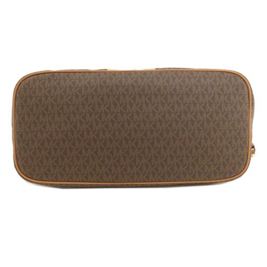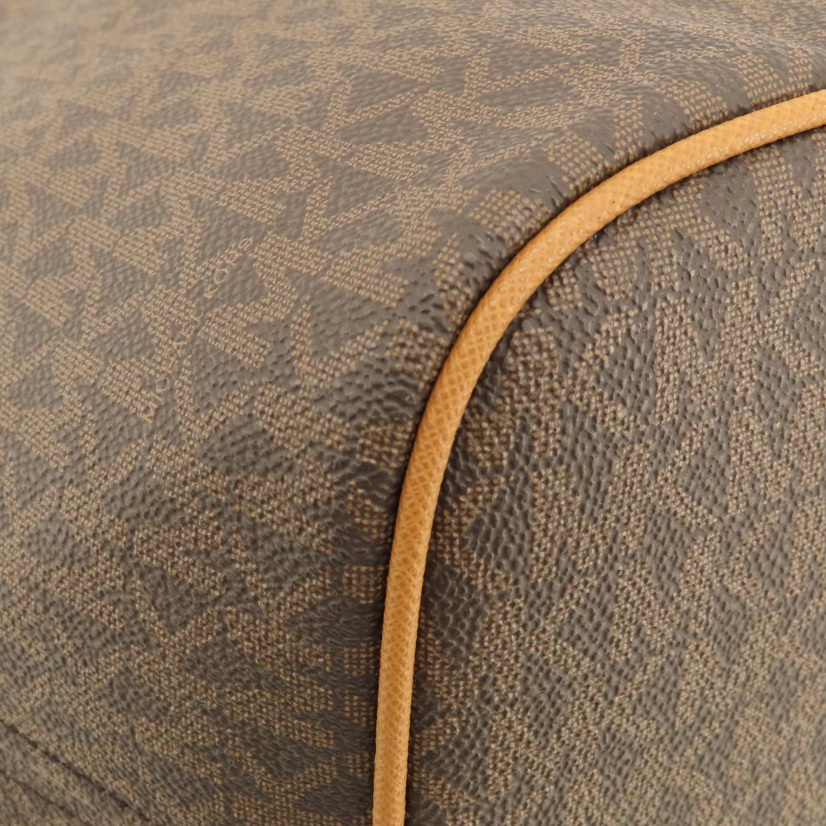 MICHAEL KORS Tote Bag Leather, Coated Canvas Brown MK signature Women Used Authentic