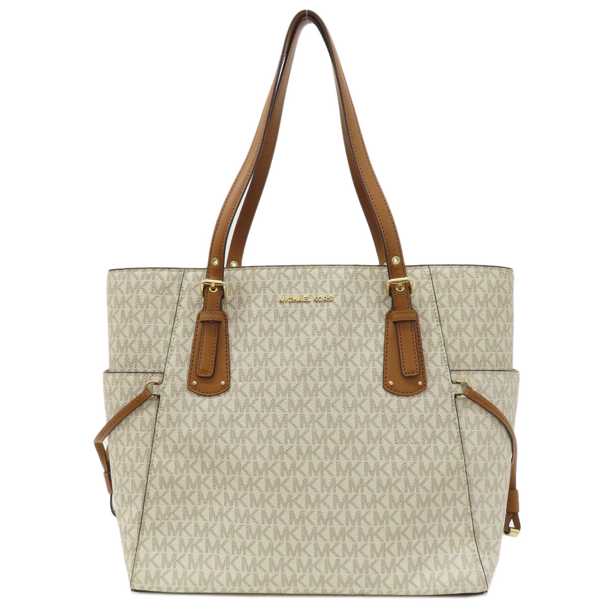 MICHAEL KORS Tote Bag Leather, Coated Canvas white MK signature Women Used Authentic