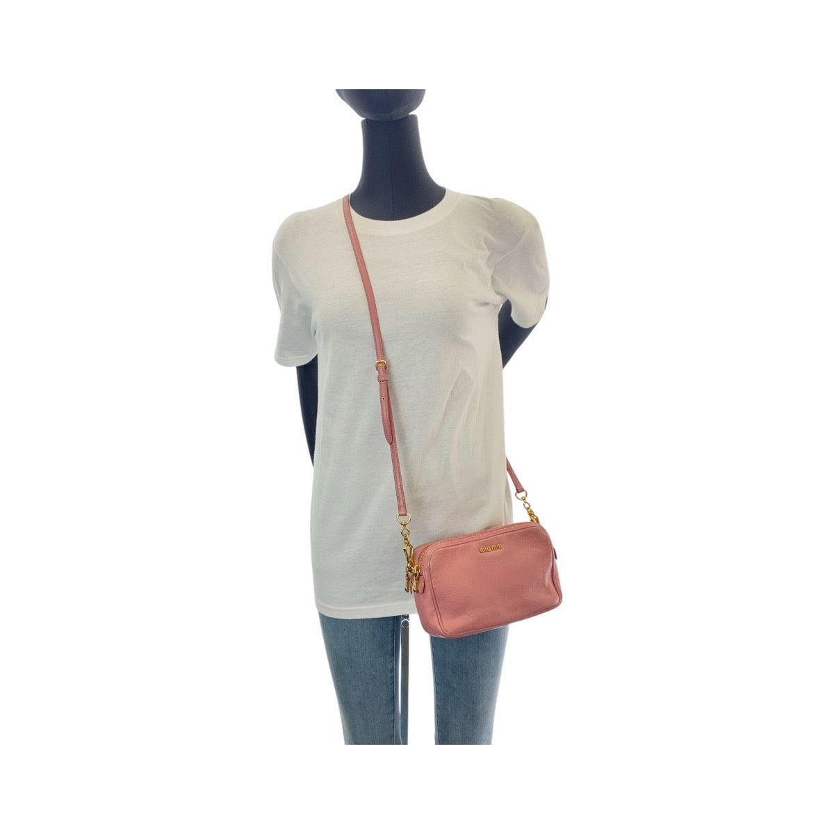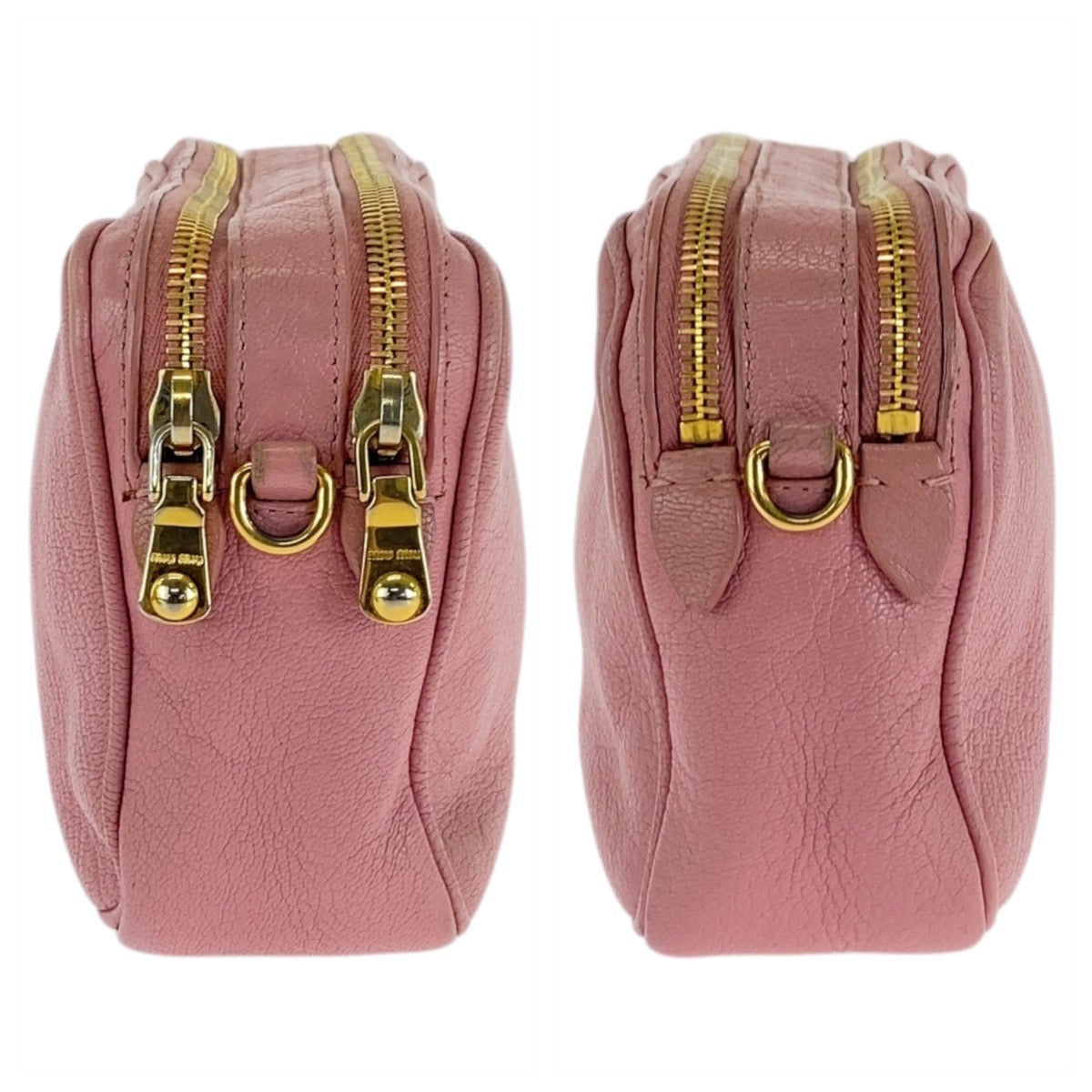 MIUMIU Shoulder Bag leather Pink Black Gold Metal Shoulder Bag Clutch Bag Madras Women Used Authentic
